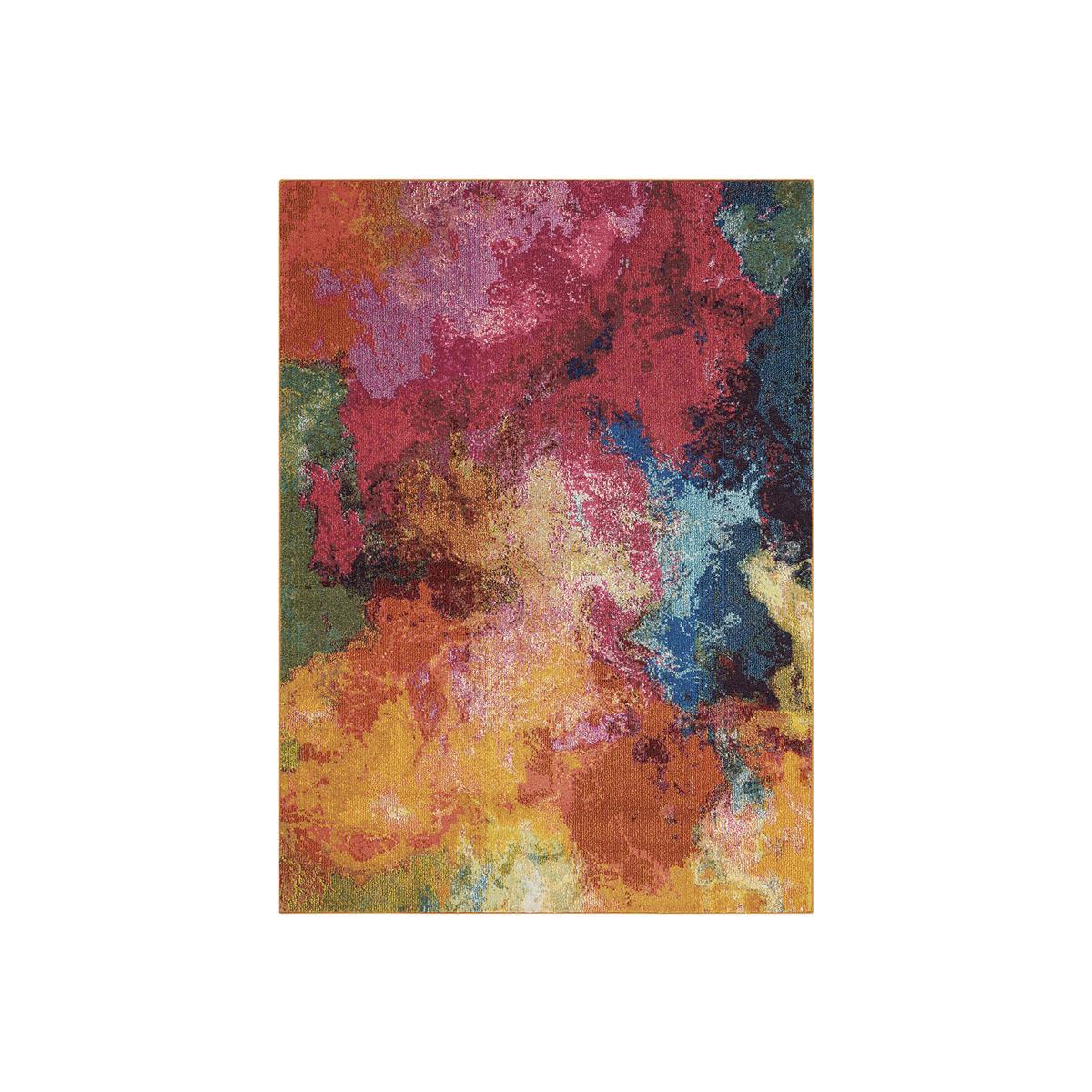 I love the burst of colour in this rug; it’s a fantastic way to add vibrancy to a neutral or minimalist space. Its large size makes it ideal for anchoring a living room or open-plan area, providing a focal point that’s both practical and stylish. It works especially well in contemporary interiors, but can also inject a modern twist into more traditional settings. Practical styling tips include pairing it with simple, solid-coloured furniture to let the rug be the standout piece, and choosing subtle accessories to balance the lively hues. Keep in mind, its size is perfect for under a statement coffee table or in front of a sofa, creating a cosy zone with a splash of artistic flair.