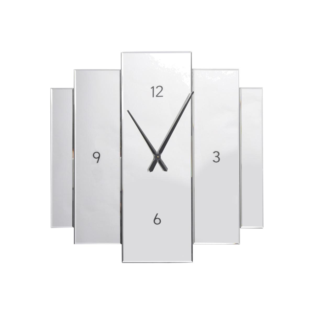With its mirrored faceted face and striking dimensions – it’s a metre high – this beautiful wall clock is a unique piece for a living room wall. Why you'll love it. Large and striking wall clock is composed of mirrored facets. Contemporary style with distinctive Art Deco influences. Elegant black hands and numbers. At 100 cm tall, this is an eye-catching piece for a feature wall. This wall clock is part of the Furniture Village accessories collection. What you need to know. For indoor use only. Battery not included. Dimensions. Depth: 2 cm (1 in). Height: 100 cm (40 in). Width: 90 cm (36 in).
