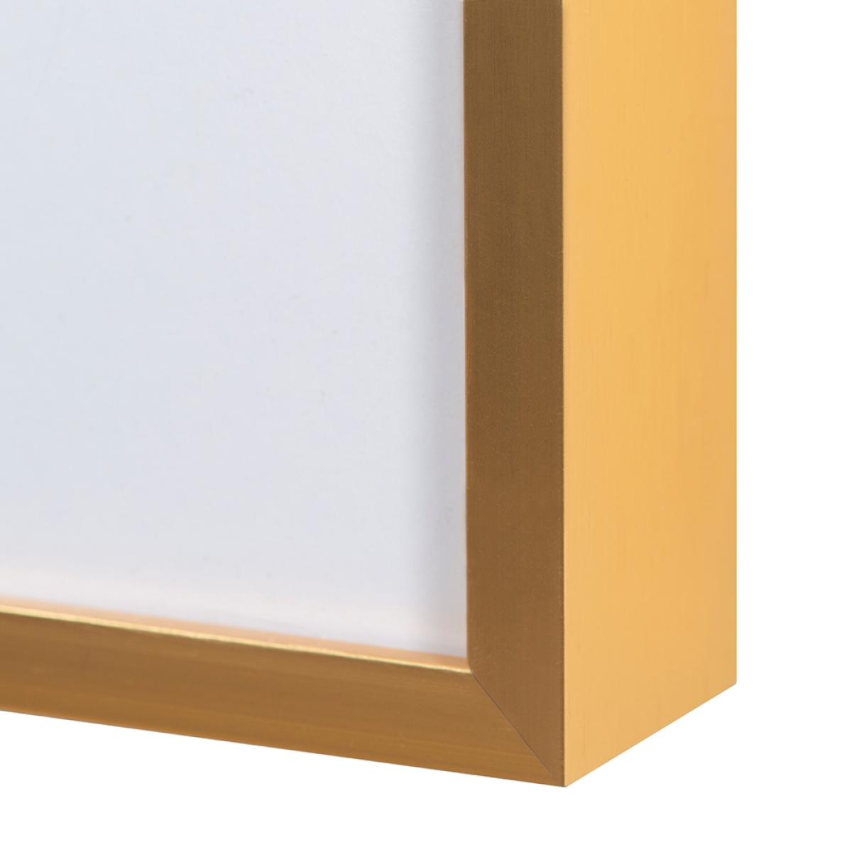 A bold geometric print featuring overlapping circles in tones of blue, hand finished with gold metallic ink. 250gsm paper with a satin finish complete with an elegant aluminium frame in a brass finish.