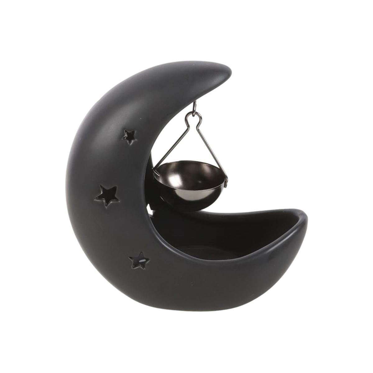 Celestial Crescent Moon Hanging Oil Burner - Black