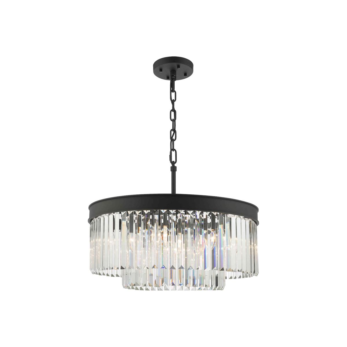 With its combination of anthracite textured metal frame and sparkling faceted crystals, this stunning six-light chandelier will make a statement in any room. Why you'll love it Faceted crystals hang from a metal frame in this statement chandelier. Glam style with an industrial edge. Clear faceted crystals hang from a contrasting textured metal frame. Anthracite frame cleverly hides the crystal fittings. Height-adjustable on installation. This chandelier is part of the Furniture Village lighting collection. What you need to know Metal and glass. Supplied with 150 cm of black cable and chain. Requires 6 x E14 SES max. 40W bulbs (not included). Professional installation recommended. Dimensions Height: 28 cm (12 in). Diameter: 60 cm (24 in).