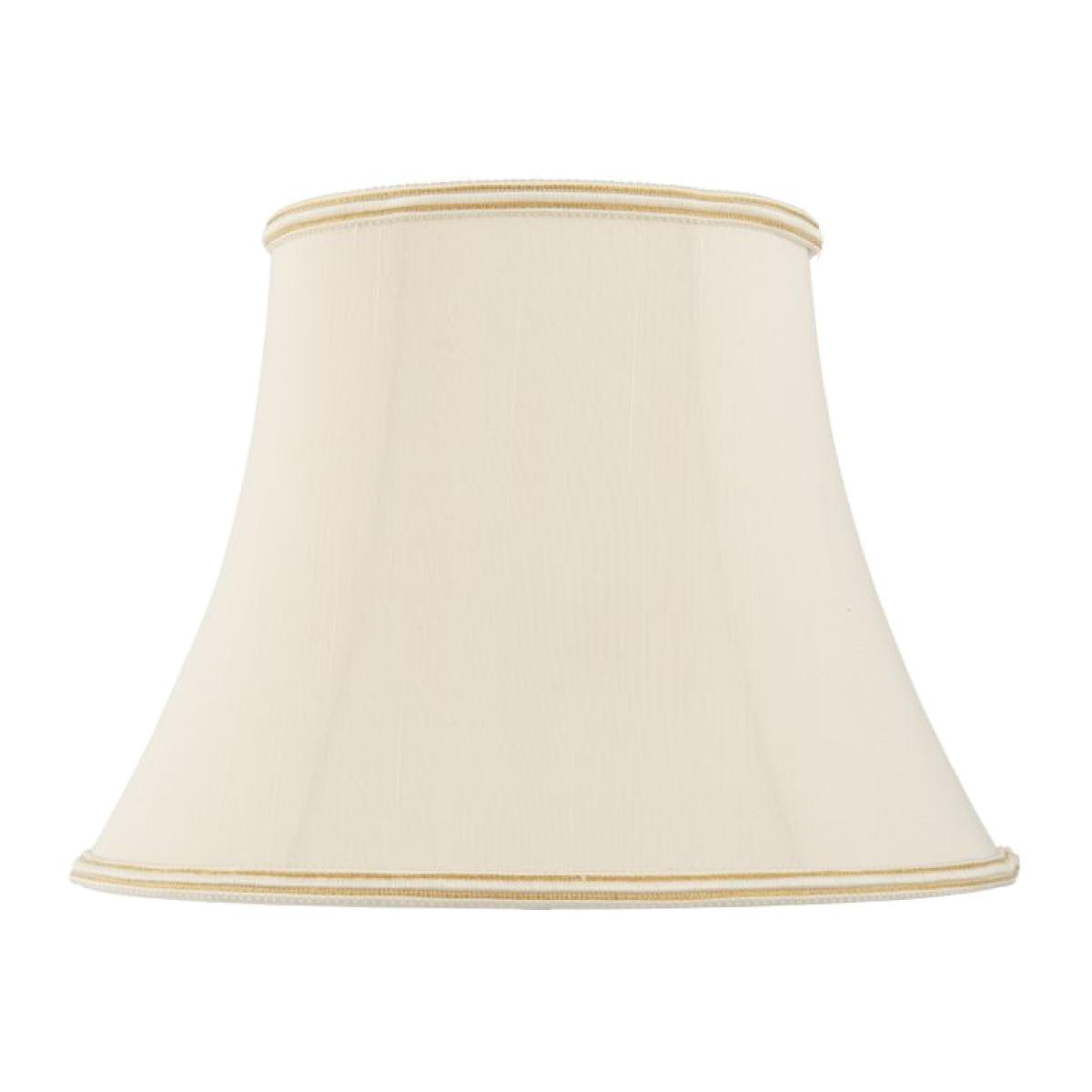 A classic 14 inch handmade lamp shade is a balloon lined bowed oval in a cream fabric with a subtle woven trim on the top and bottom edges. Available in a choice of sizes. Note - this shade has a fixed gimbal and is not suitable for use with pendants.