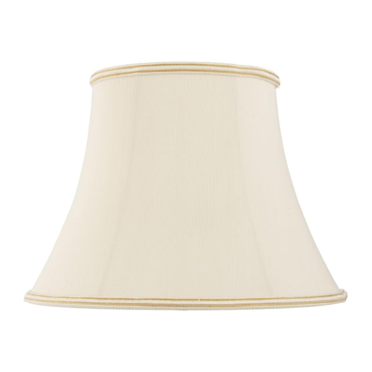 A classic 20 inch handmade lamp shade is a balloon lined bowed oval in a cream fabric with a subtle woven trim on the top and bottom edges. Available in a choice of sizes. Note - this shade has a fixed gimbal and is not suitable for use with pendants.