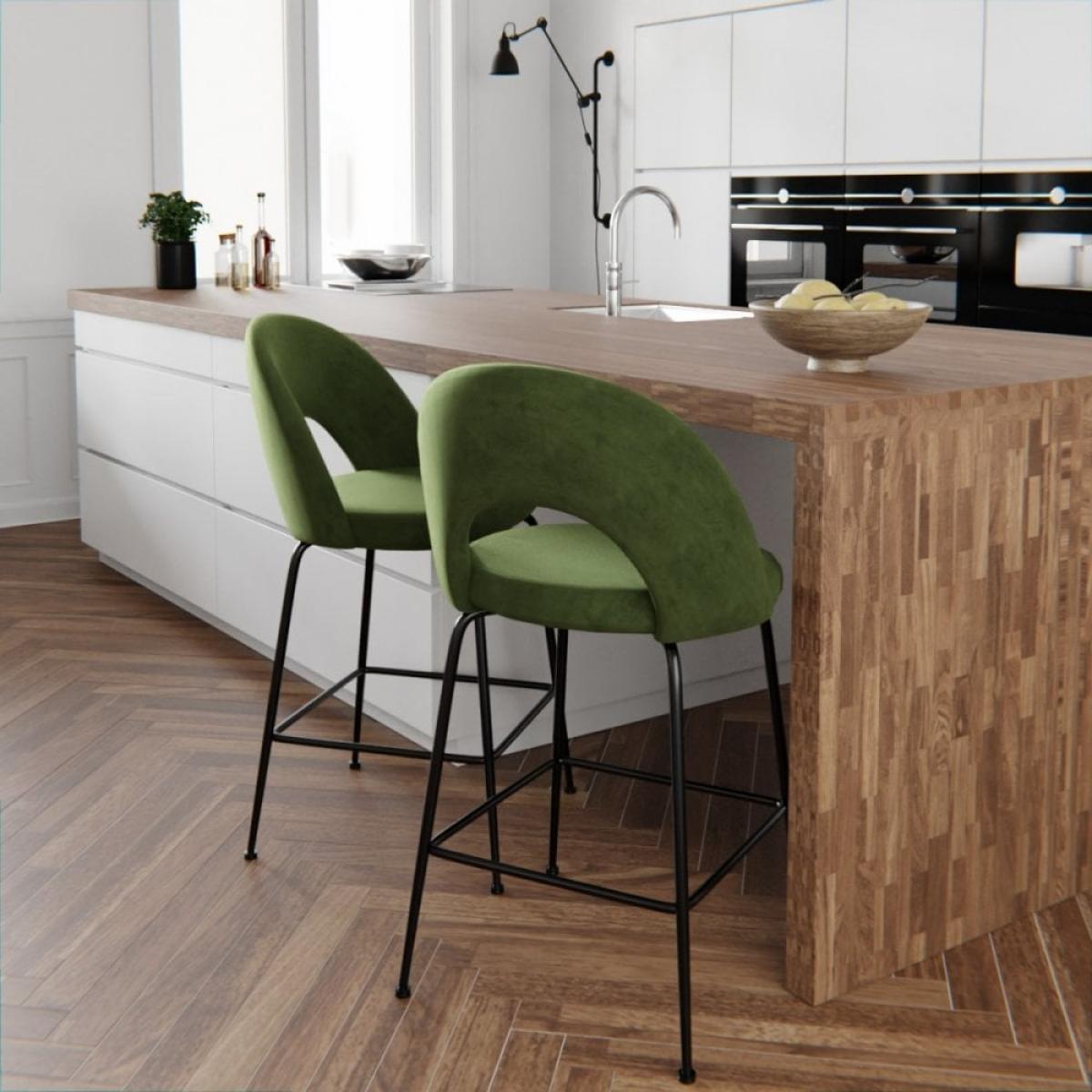 The welcoming curved backrest in grey velvet and slim metal legs of the Celine kitchen stool are the perfect mix of style and comfort. Tuck into your breakfast and sink into the padded cushion of the plush upholstered seat, complete with a trend-setting cut outback. Available in a range of colours and fabric options. View The Celine Range