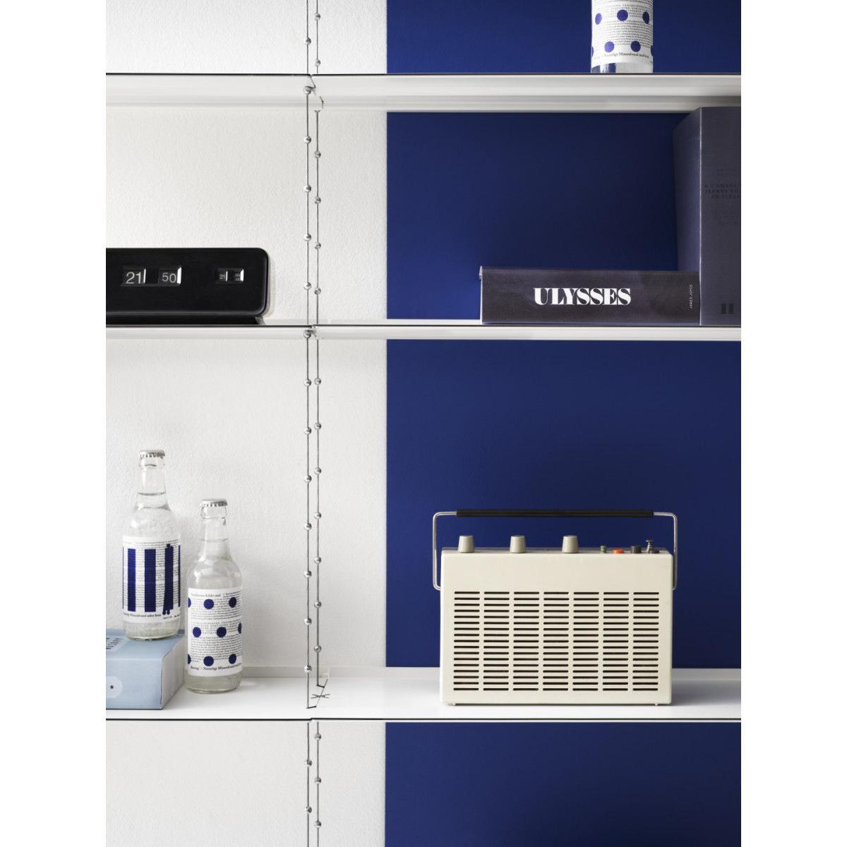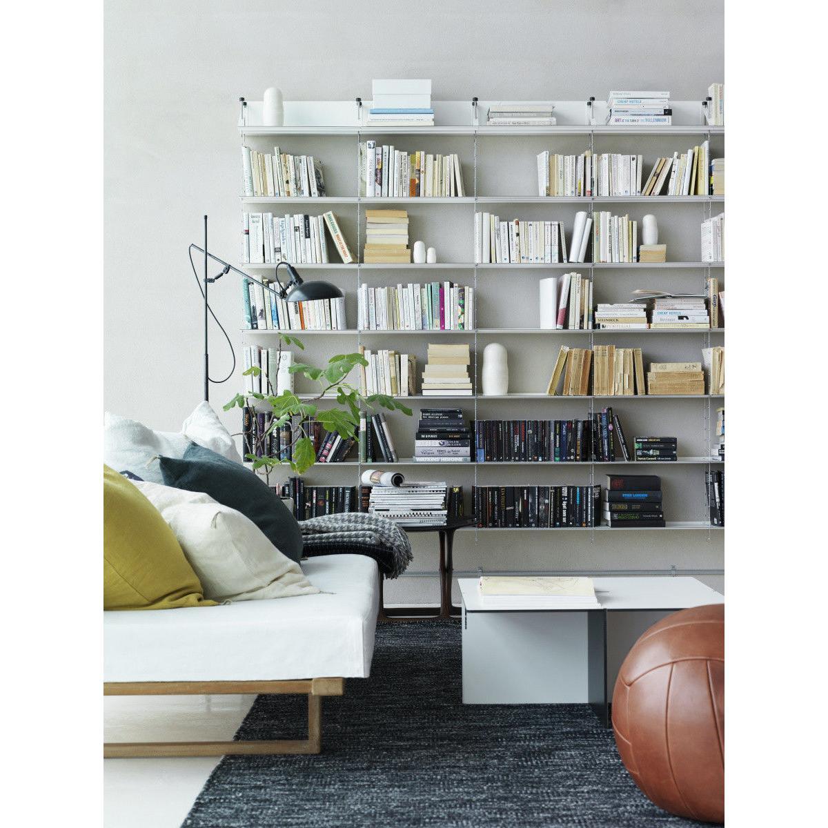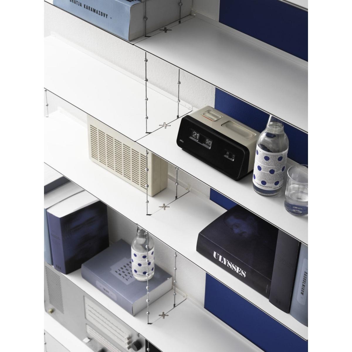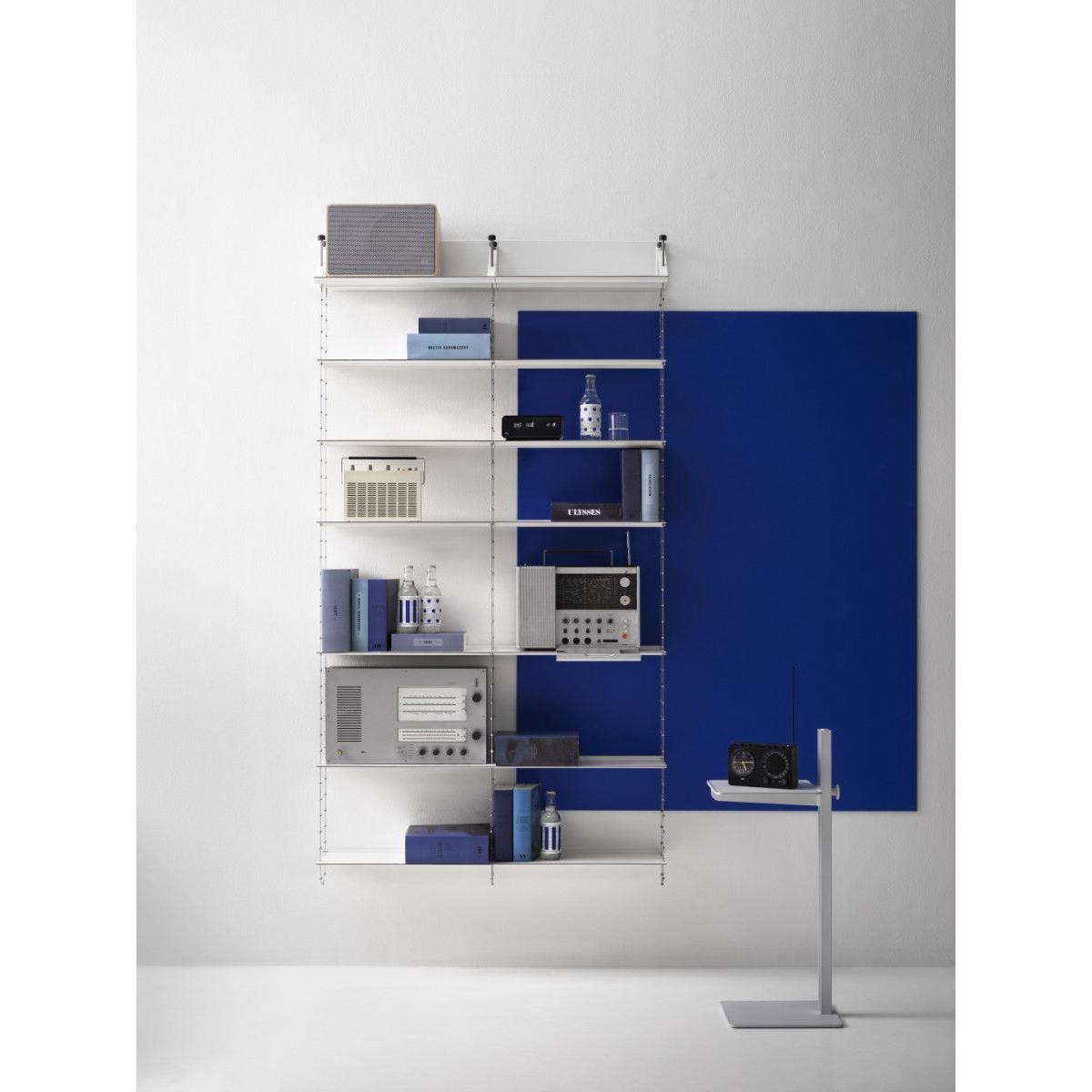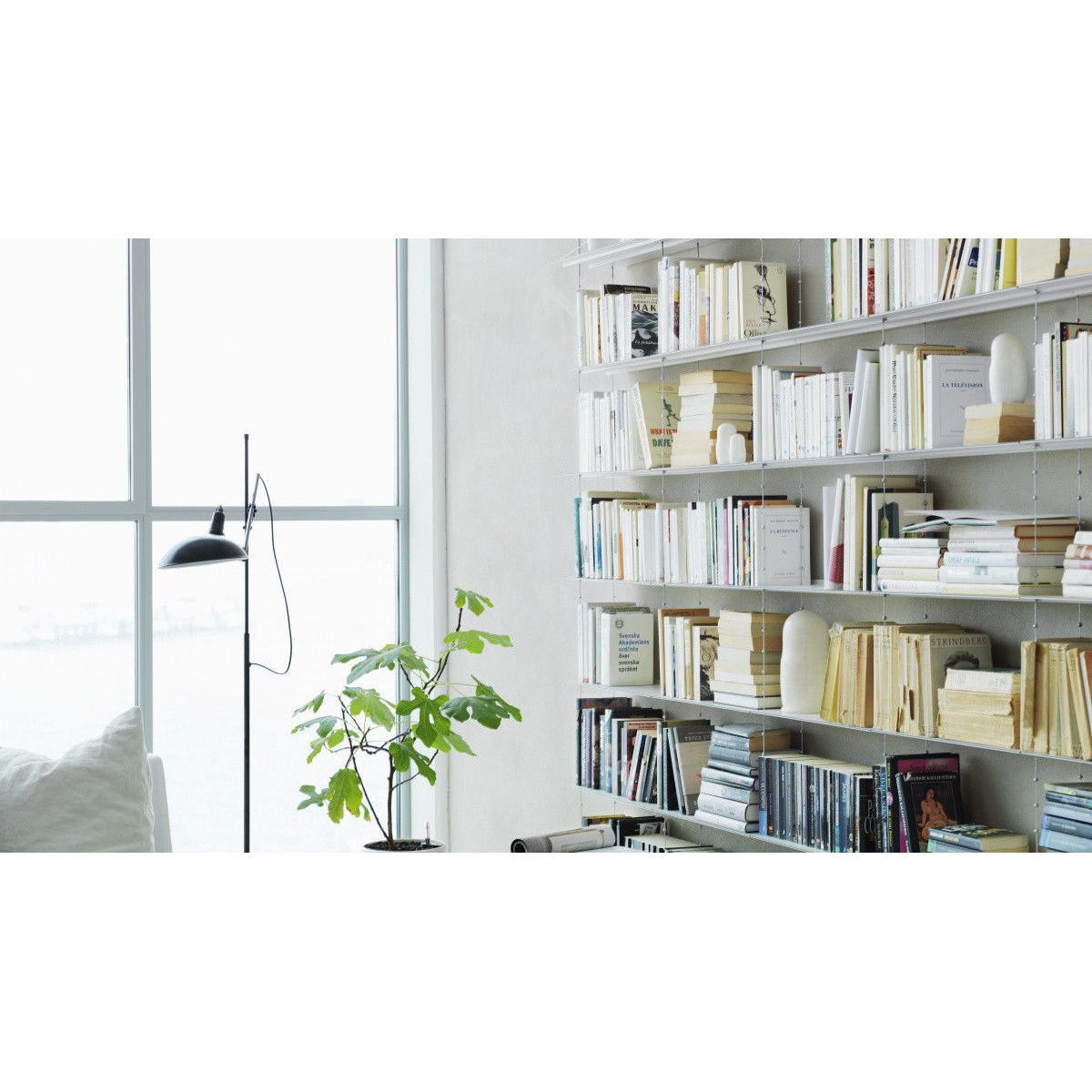 "Creating a floating illusion, the Cell shelving stands out with its breathtaking, ethereal design: this is a stunning architectural element which will enhance walls in a both discreet and original way. It is composed of 7 shelves (L 52 cm) suspended using steel cables. Extendible, adjustable, and extremely sturdy, the Cell shelving has been designed to last over the years and to adapt to your needs. Its unique and exclusive design is the product of leading-edge technology, with the aim of ultimate simplicity. The cables can be adjusted to a millimetre exact, thanks to the wheel on the top shelf. The height of each shelf can be adjusted easily thanks to the zinc bearings soldered onto the cable. Once the height has been adjusted to your taste, a magnetic holder system fixed into the wall will stabilise and rigidify the structure. Laterally, the Cell A shelving can be extended as you like, through the addition of extra B modules, to the right of the A module. Always begin your composition with an A module, then add the desired number of B modules to the right of the module. Designed by Peter Cohen in 2005, the Cell shelving straight away claimed several design accolades in Sweden. It is exhibited in the National Museum, in Stockholm. Continuing in the line of the famous "Less is more" by Miles van der Rohe, the Cell shelving embodies the designer's aspiration to use the most advanced technology to achieve ultimate simplicity. Peter Cohen is a multi-disciplinary creator (writer, film-maker, film producer, documentary director, furniture designer) with a degree from the University of Stockholm. He explains: "I designed this shelving for someone with a lot of books. I needed to be extremely efficient in terms of space, but also aesthetically, in terms of sturdiness, and in terms of creating a lightweight design. The idea formed slowly, whilst I slept. I imagined a bridge with cables and pylons. I also visualised the form of a double helix, the shape of DNA, with its long and fine strands. " Peter Cohen got to work on a prototype, based on a pair of metal cables with ball-shaped brackets at regular intervals. "I had to search far and wide for someone who could produce them. I discovered that there were only two large industrial names who could, one of them being Swedish. Unfortunately, they showed no interest in my project. " Yet, fortunately, they eventually changed their minds. Together, engineers and the designer developed the cable which Cohen had visualised. The shelves were also the subject of creative reflection and intelligent construction. "I wanted shelves that were sturdy yet extremely lightweight. Finesse played an essential role for the appearance, and I needed shelves that could support a heavy weight without bending. ". To achieve this, the shelves were made using highly-resistant steel. It is the same steel that is used to make cars crash-resistant. The thin shelf has a black edging to make the edges visible, in the form of fine lines, cutting through the air across the light, white and ethereal composition. In 2021, String released the Cell shelving, after a hiatus of several years. Technically and visually perfected, it isn't just robustly constructed, but is also manufactured in a unique way. Perhaps String may pay tribute to Cohen's history on this level: when you've spent more than half of your living making films, you understand the importance and value of the details, and you never give up, no matter how many years it takes to make sure something is done properly.