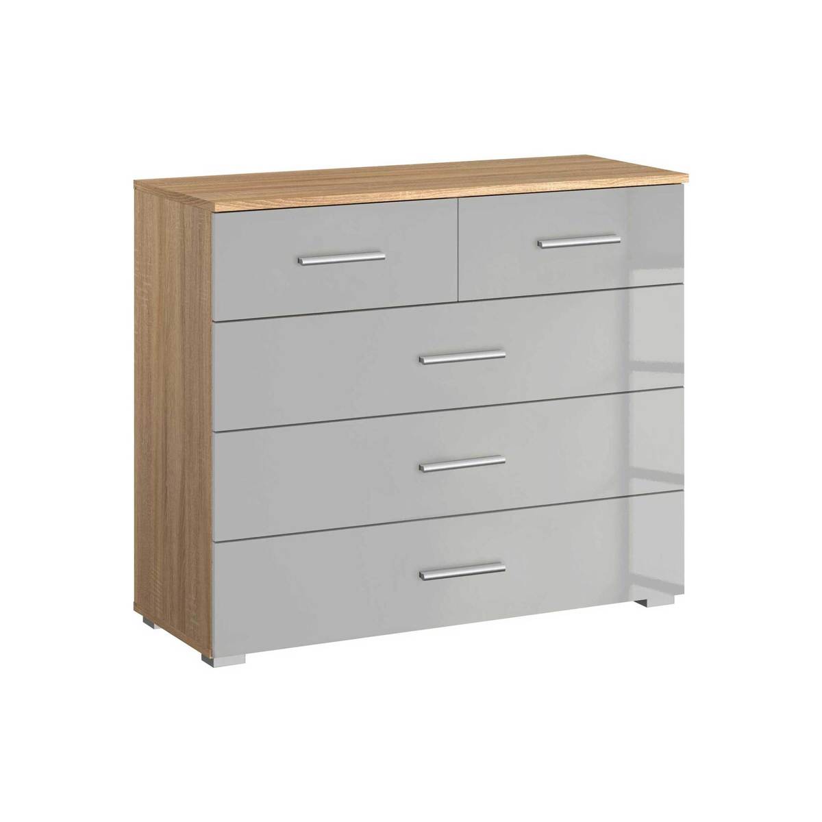 Celle 5 Drawer Chest, Sonoma Oak and High Polish Soft Grey
