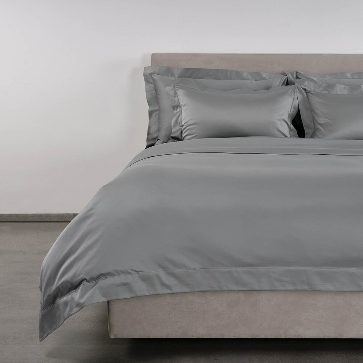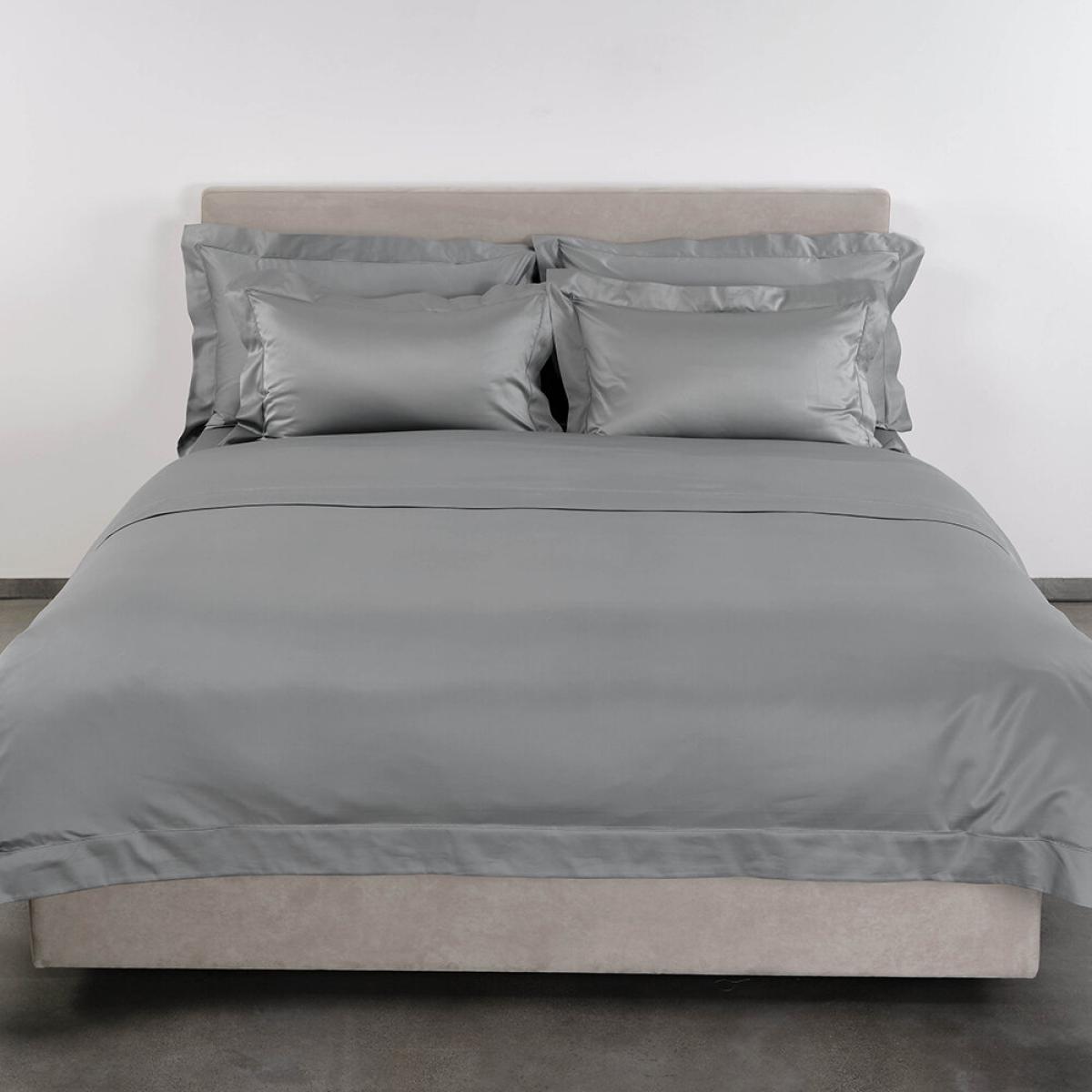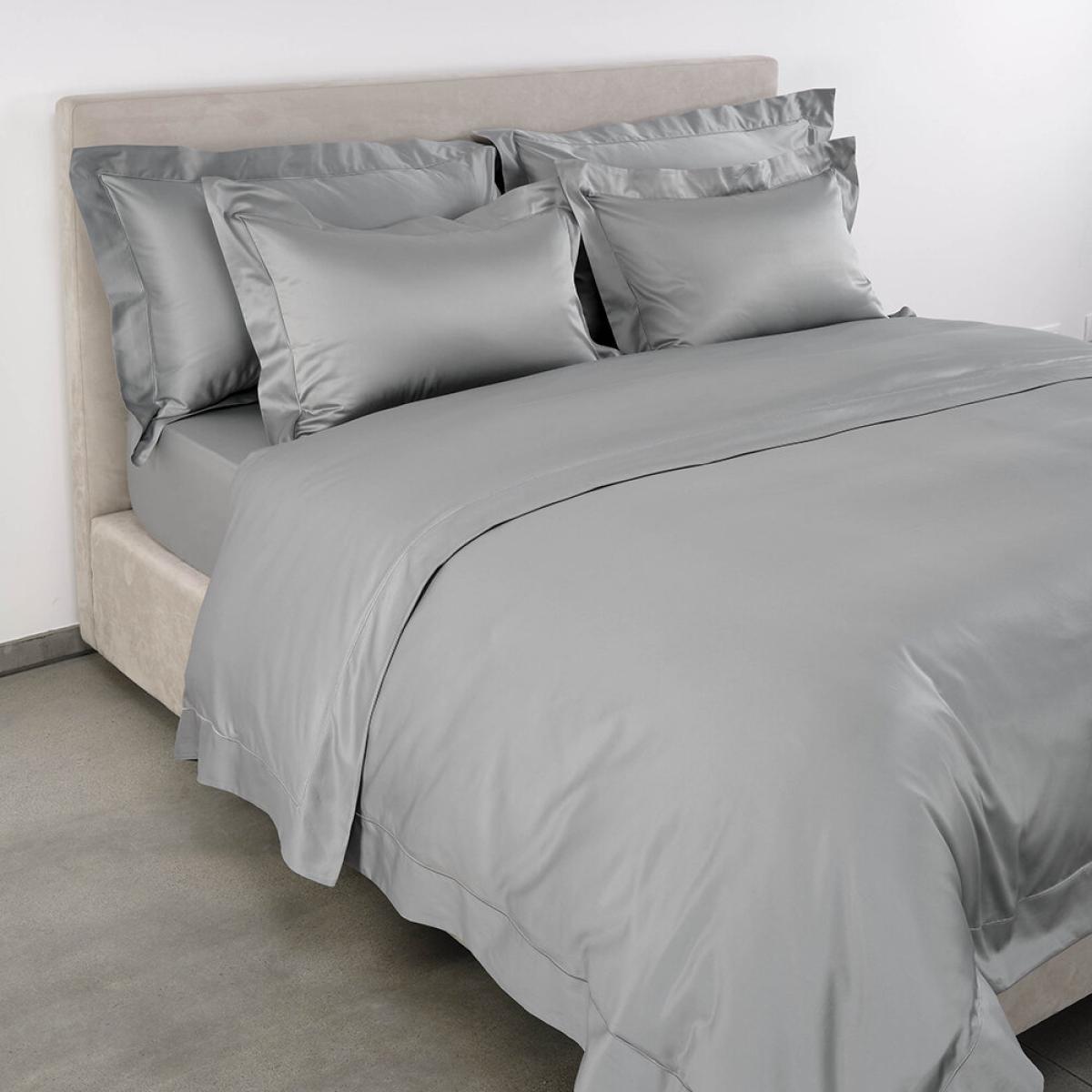Bring luxury into your bedroom with this Bourdon duvet cover set from Celso de Lemos. Crafted to the highest standard in Portugal, this 700-thread count Egyptian long staple cotton sateen duvet set arrives in a timeless silver tone. Celso de Lemos are obsessional about protecting our environment in every stage of production and hold OEKO-TEX standard 100. Their production methods are carefully controlled, and handmade throughout to ensure the finest Artisanal finishes. Pair with linens from Celso de Lemos to complete the look.