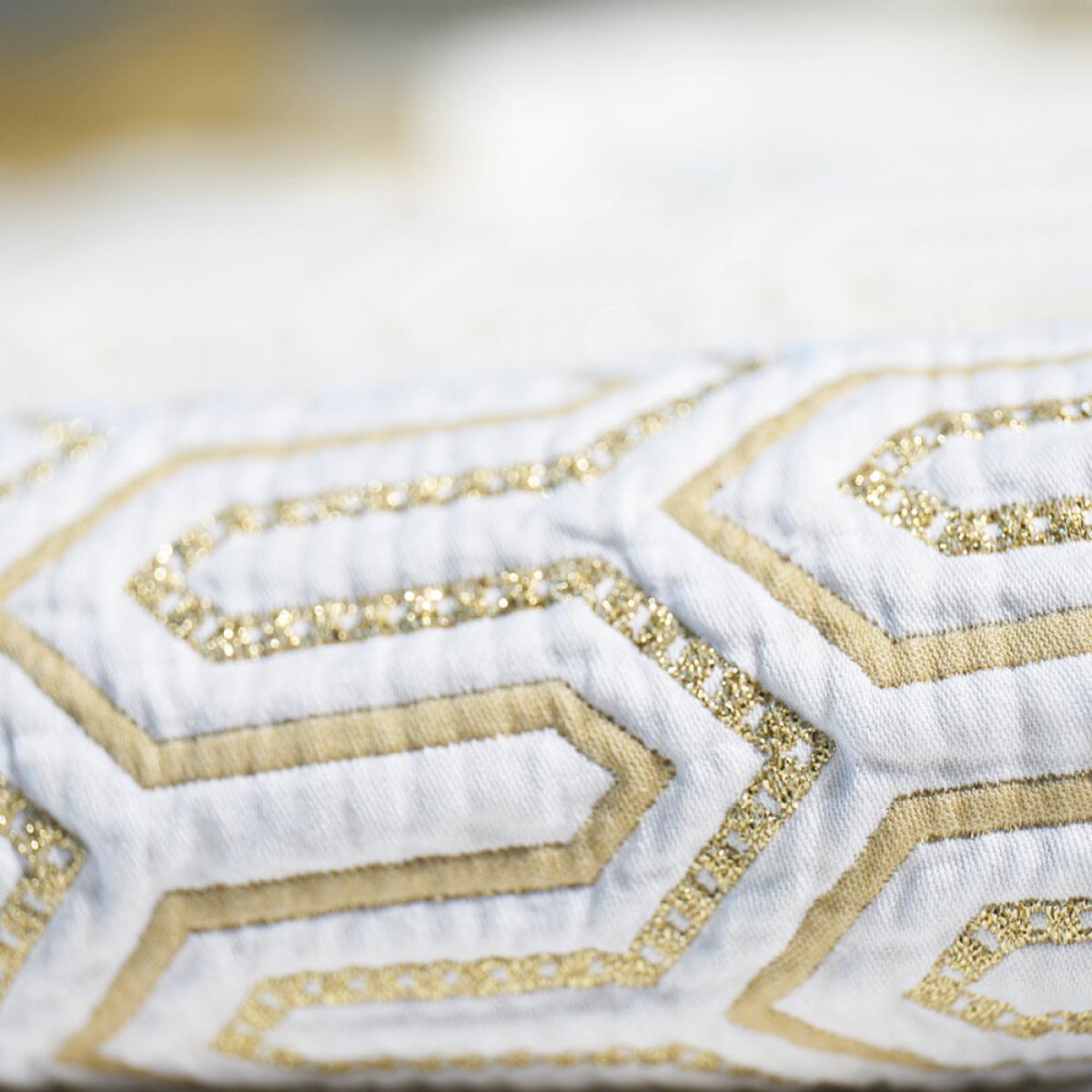 Transform your bedroom with this Vendome pillowcase from Celso de Lemos. Crafted from an Egyptian cotton blend, this opulent pillowcase has been made with carefully-controlled ecological friendly production methods and features a geometric jacquard pattern in gold and cream tones that can only be produced on the specialised machine that Celso de Lemos possess. Pair with complementing bed linen from Celso de Lemos to complete the look.