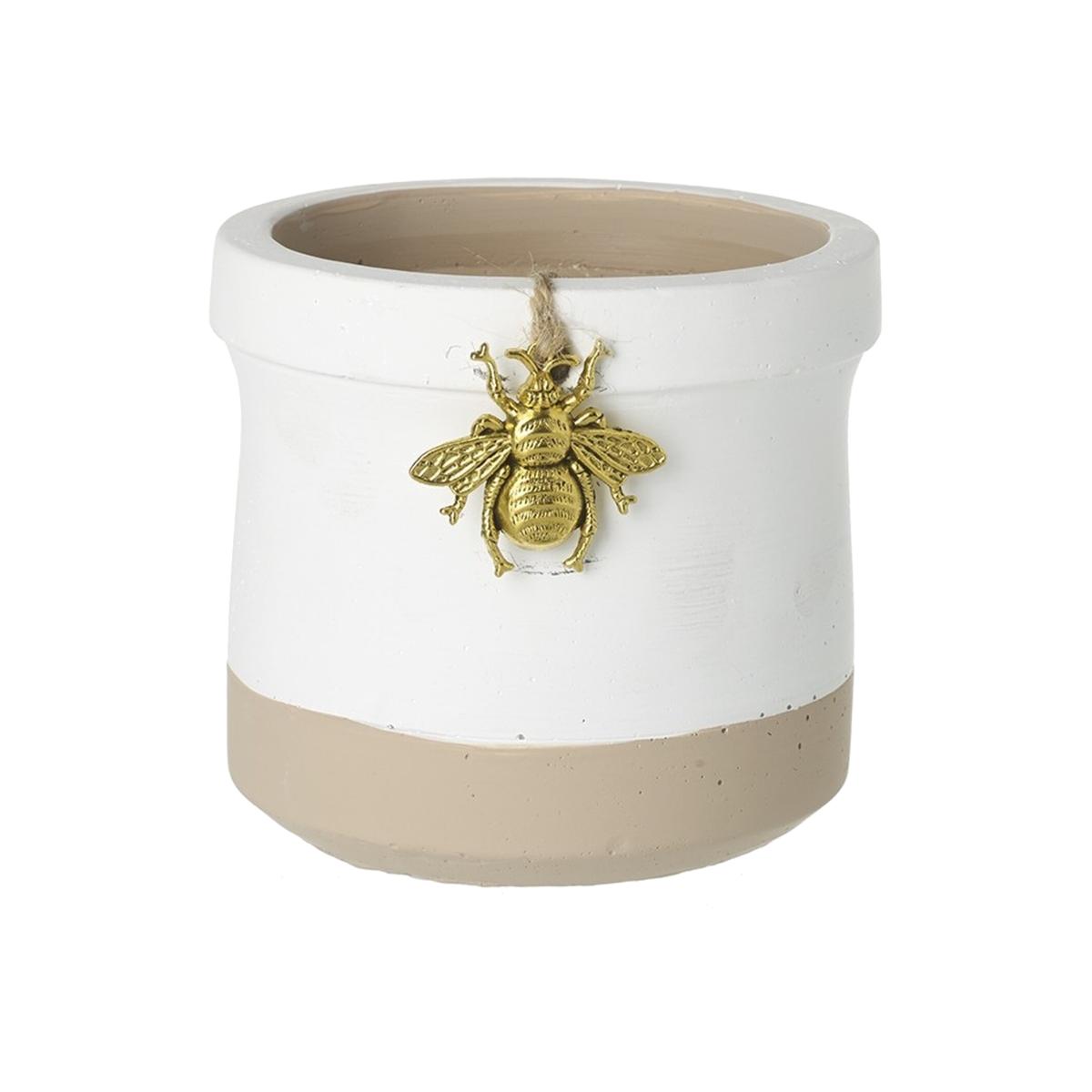 I really like this cement pot with the gold bee detail - it’s a great fusion of rustic charm and a touch of luxe. It works particularly well in modern or contemporary interiors thanks to its clean lines and neutral tones, but could also add visual interest in a more eclectic or vintage-inspired space. When styling, consider pairing it with leafy green plants like ferns or succulents to enhance its natural vibe, and use it as a statement piece on shelves or side tables. The gold bee detail provides a subtle hint of glamour, so it’s best showcased where it can be appreciated, yet it remains versatile enough to blend seamlessly into both minimal and maximalist schemes.
