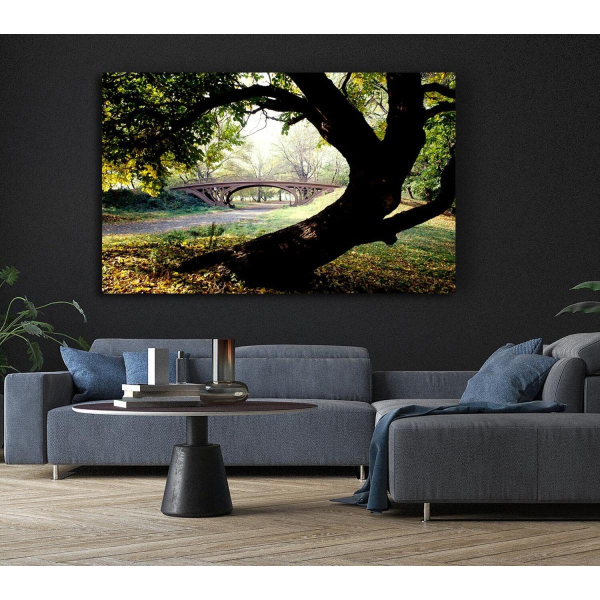 Central Park Bridge New York City Canvas Print Wall Art - Yellow / 81.28cm