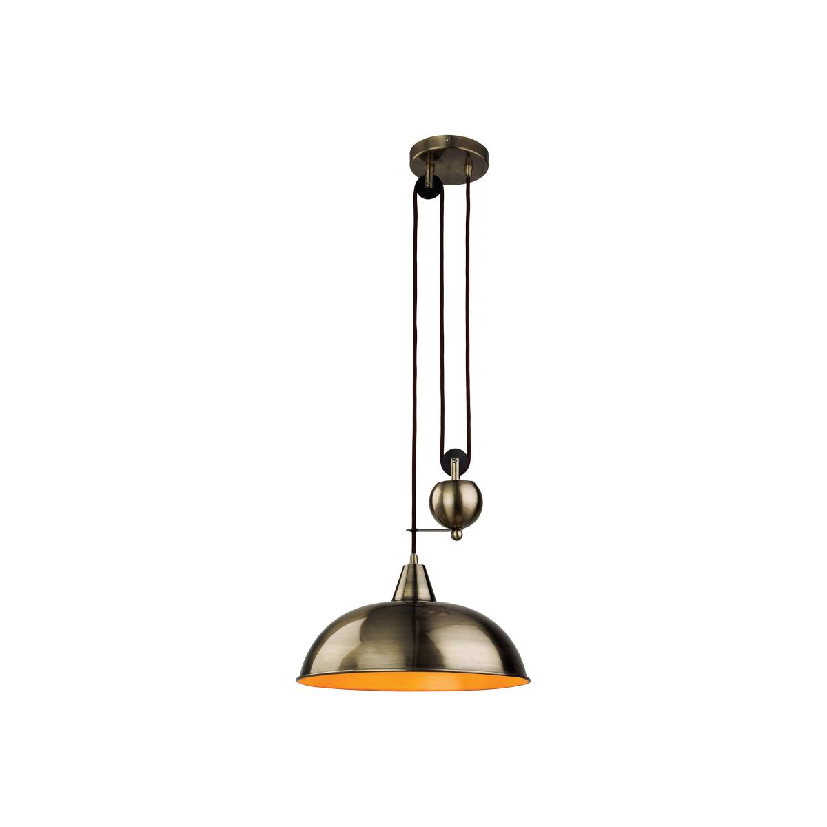 Modernpendant ceiling light boasting an antique brass finish. The Century 1 light ceiling pendant is astylish modern pendant with an antique brass finish to compliment your breakfast or dining area. With a high quality finish and detailed features will make this ceiling light an interesting focal point in your home. Style this light with ourwarm glow or daylightLE D E27 light bulbs for the ultimatemodern trend.