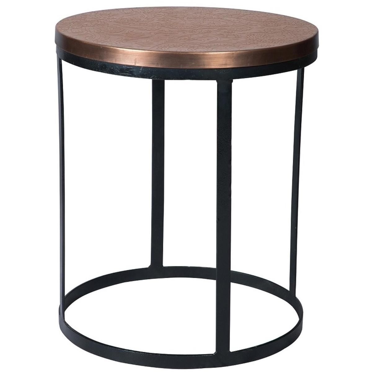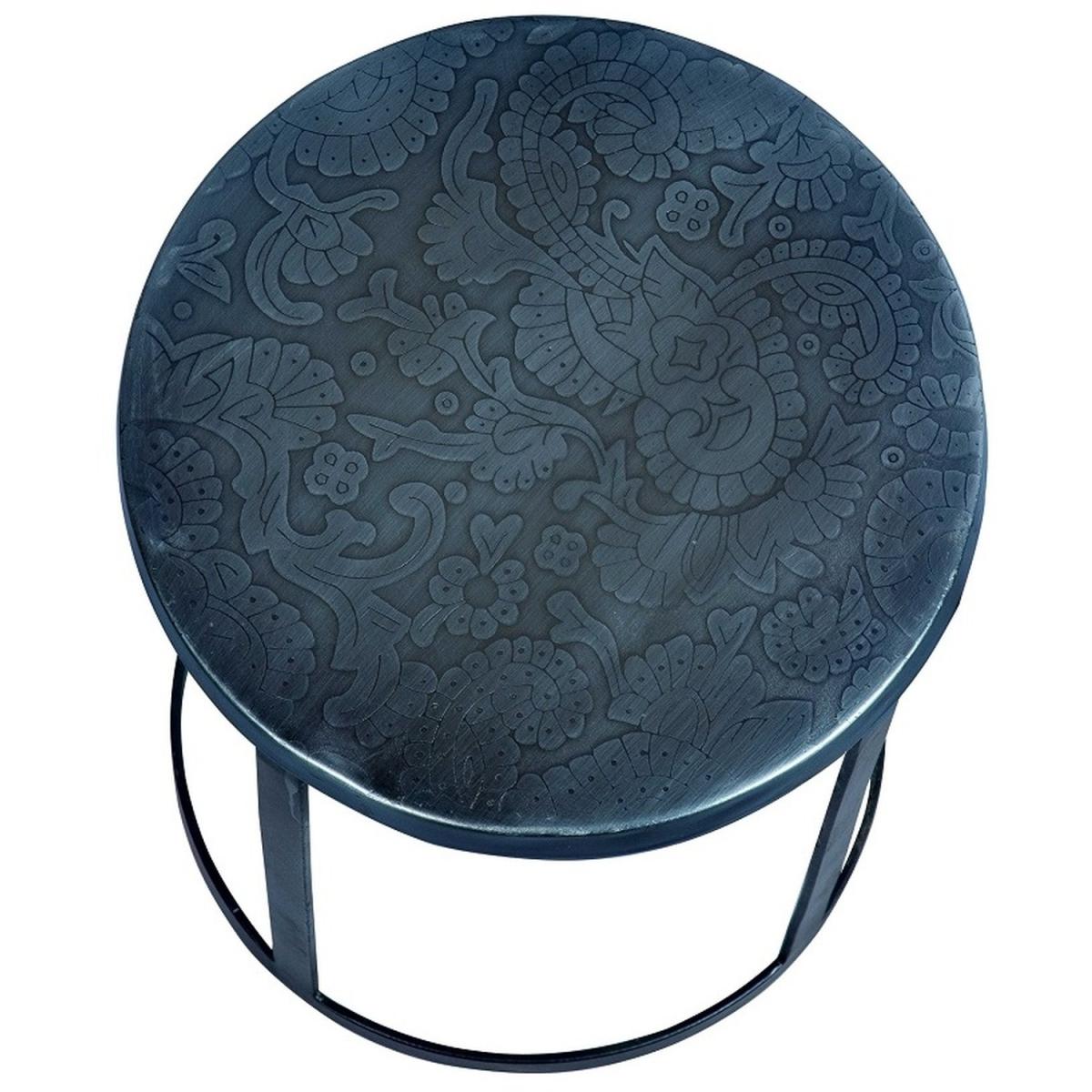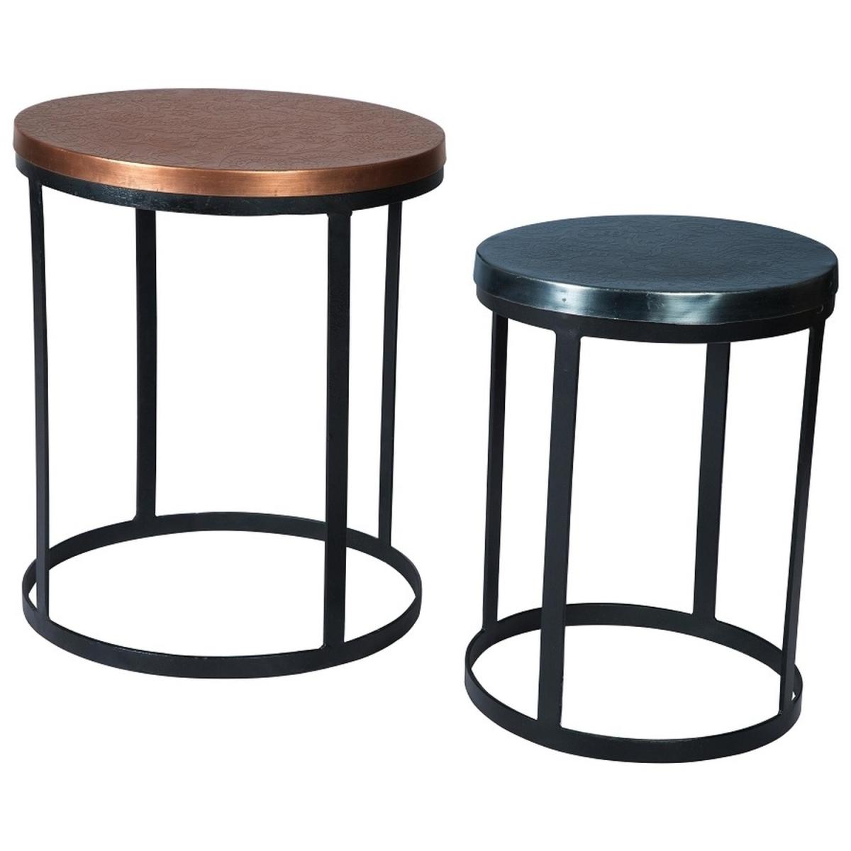 Century Round Reclaimed Metal Nest of 2 Tables, 2 Tone Colour, The Century Nest of tables will bring a touch of industrial style to your living room or even working space. Each piece is unique due to its handmade character and items can vary slightly from the images shown. You will find that this nest of tables is a must in any modern home as it is a versatile item that can be used for a coffee table, side table and/or occasional table, depending on your needs, while adding a touch of style and creativity thanks to its unique design. Handmade by craftsmen in India, this nest of tables comes in 2 different colours, with a similar design on the top and with a black metal base.