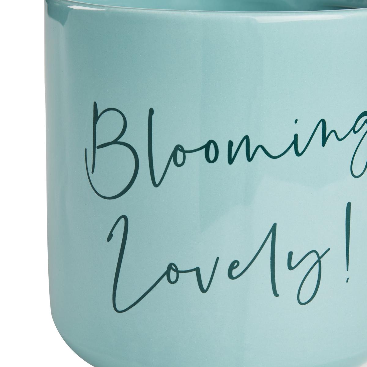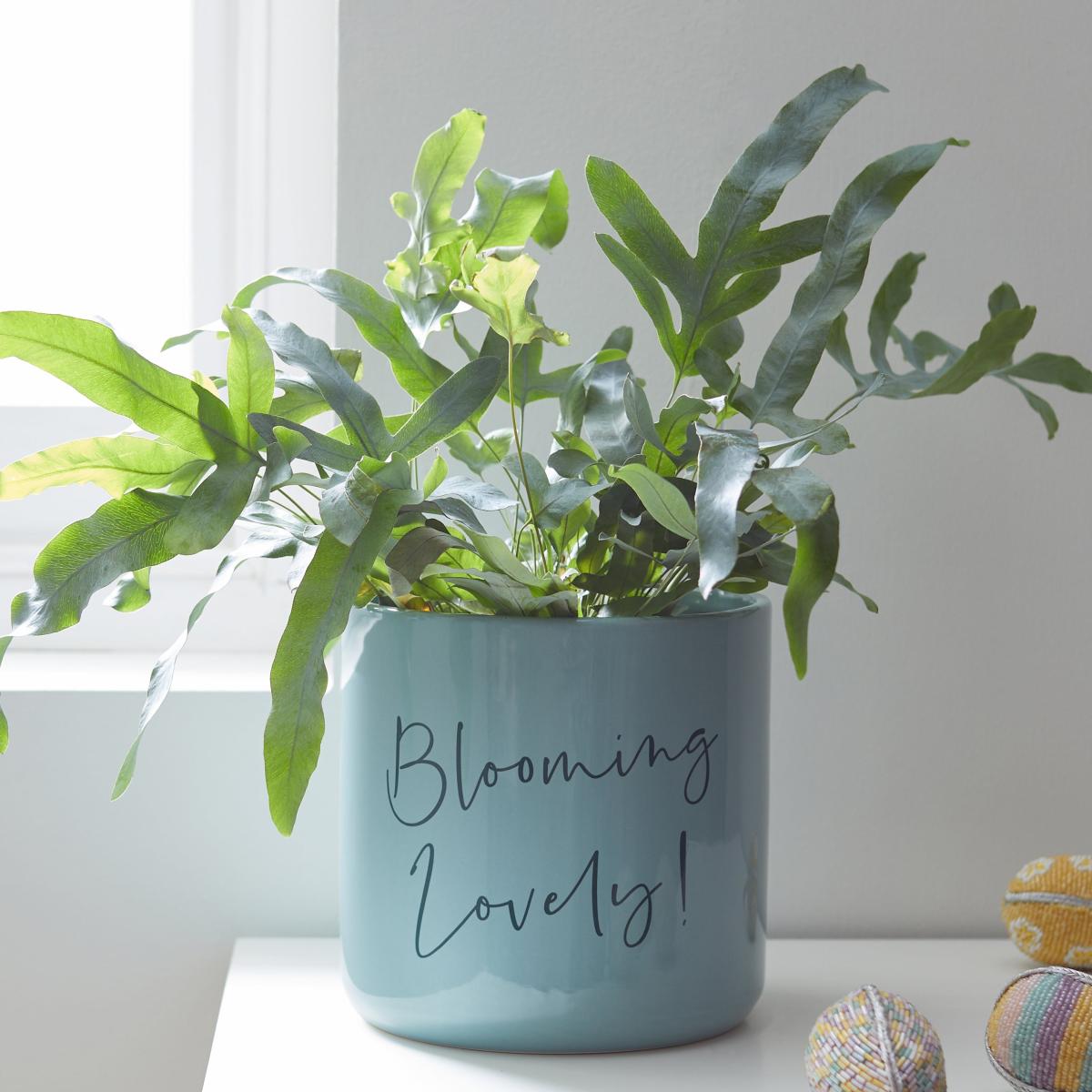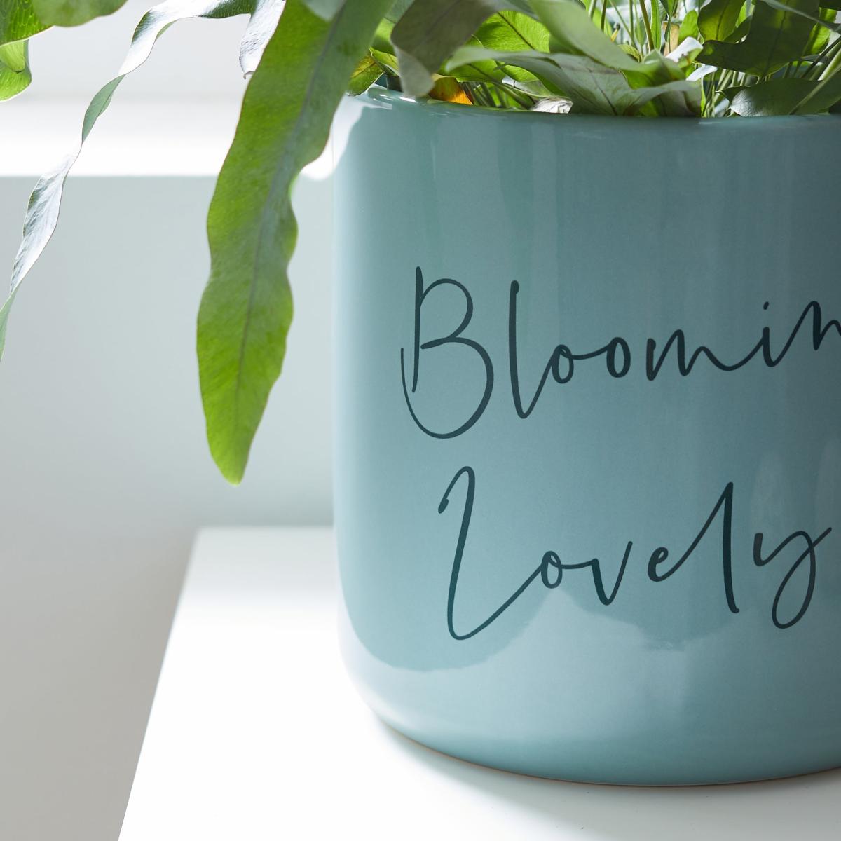 Add a fun and refreshing update to your home with this calming ceramic plant pot. Perfect for placing plants around your home or desk space and providing a subtle and relevant “blooming lovely” slogan on the front. This modern shaped plant pot is easy to maintain and great to add a splash of fresh spring colour to your house.
