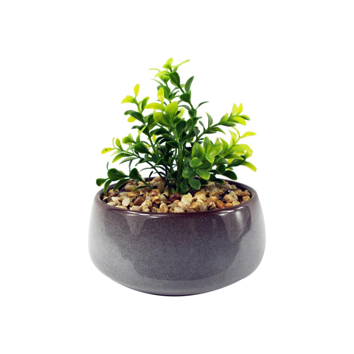 Ceramic Blue Dish Planter with Artificial Crassula Plant. Plant comes fully potted in the small ceramic planter shown. This is a blue misted design which looks fantastic on a desk. Decorative stones are fully fixed and won't come loose. Ready to display. Available with a choice of plants.