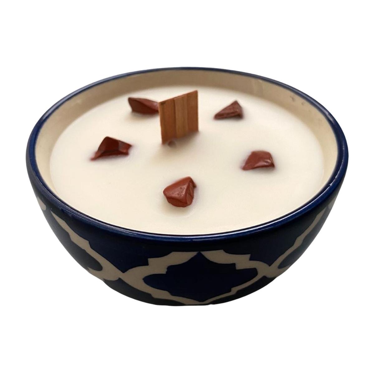 Beautifully crafted, our Ceramic Bowl Candle exudes elegance. Housed in a stunning ceramic bowl measuring 9x5cm, each candle boasts scents like Cinnamon Apple, Coconut, Lavender, Sea Spray, Vanilla, and Meditation. Infused with Red Jasper, Tiger's Eye, Amethyst, Sodalite, Clear Quartz, and 7 Chakra crystals, these candles create a sensory experience. The ceramic bowl enhances decor while providing up to 30 hours of burn time.