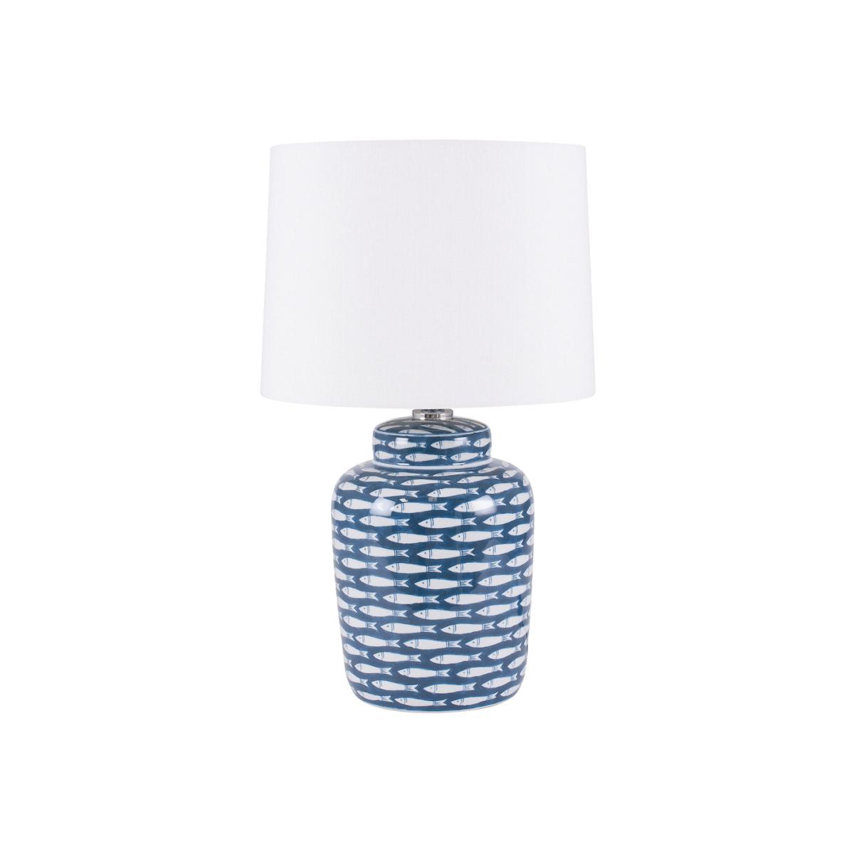 In dreamy deep blue and white, this ceramic lamp base comes printed with a repeated fish design and a complementing tapered, textured cotton cream shade. Table Lamp Diameter: 30cm. Table Lamp Height: 52cm. Please note Bulb is not included. Bulb Required: E27, Maximum 60W.. This product will be dispatched by one of our trusted suppliers. You’ll be contacted by their selected courier about your delivery.