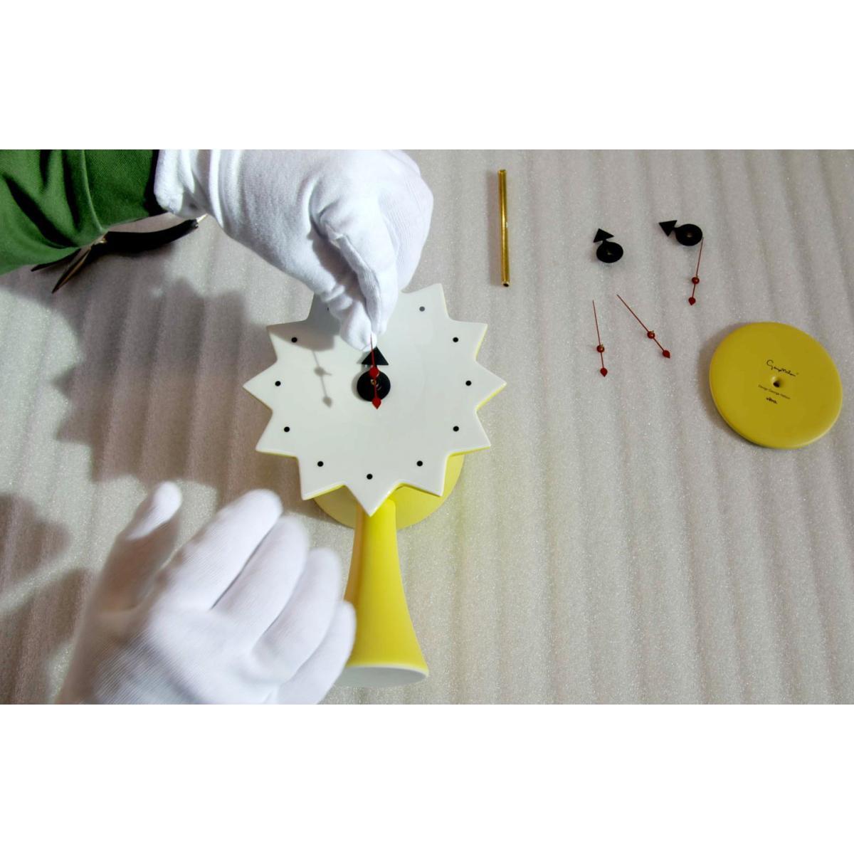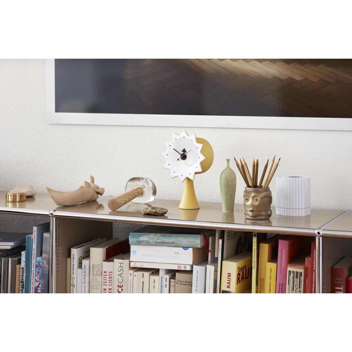 George Nelson (1908 - 1986) is considered to be one of the founders of American modernism. He contributed to the beginning of modern design with a human dimension. Renowned for his collaborations with brands such as Vitra and Herman Miller, he has created several products that are now considered to be icons of mid-20th century modernism. A belief in progress and increasing economic prosperity were central aspects of the American way of life in the 1950s. Everything seemed possible and people would try to be "modern”. With the aim of bringing modern design into American homes, George Nelson designed a wide range of everyday objects up to the 1970s: Lamps, clocks and other home accessories, including the Bubble Lamps and the Ball Clock which became icons of mid-century modern design. The Ceramic Clocks table clocks combine geometric and organic shapes into a playful and sculptural aesthetic, evoking 3D works by artists such as Constantin Brancusi or Isamu Noguchi. Although designed and fully developed in the early 1950s, Ceramic Clocks were never mass-produced for unknown reasons. Based on the original plans and prototypes, Vitra has produced a new edition of Ceramic Clocks in porcelain. Available in cheerful colours, they are fitted with an ultra-modern high-precision quartz mechanism.