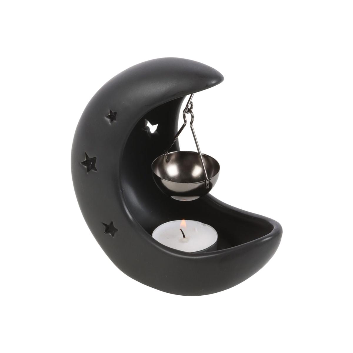Create a truly enchanting atmosphere with our unique and elegant Black Crescent Moon Hanging Oil Burner. This beautifully crafted burner is a stunning statement piece for anyone who loves mystical, celestial, or gothic decor. Crafted from smooth, matte black ceramic in a beautiful crescent moon shape, this burner adds an instant touch of magic to any room. The real charm lies in its unique design: instead of a fixed dish, a small, silver-tone metal bowl hangs gracefully from the top curve, ready to hold your favourite wax melts or essential oils. CAUTION: bowl will be hot whilst in use. Recommended for use with fragrance oil diluted with water. Allow to cool completely before handling.
