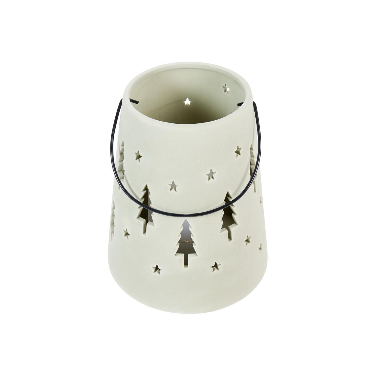The Ceramic Forest Lantern is a great accessory to finish your Christmas decor. This charming lantern is traditional and features cut-out stars and trees for a beautifully wintery feel. Pop in your favourite candle, and the flicker and light from the flame will shine through to make your space cosy and inviting. It's finished with a black handle for easy carrying as needed and will coordinate beautifully with your existing festive decorations.