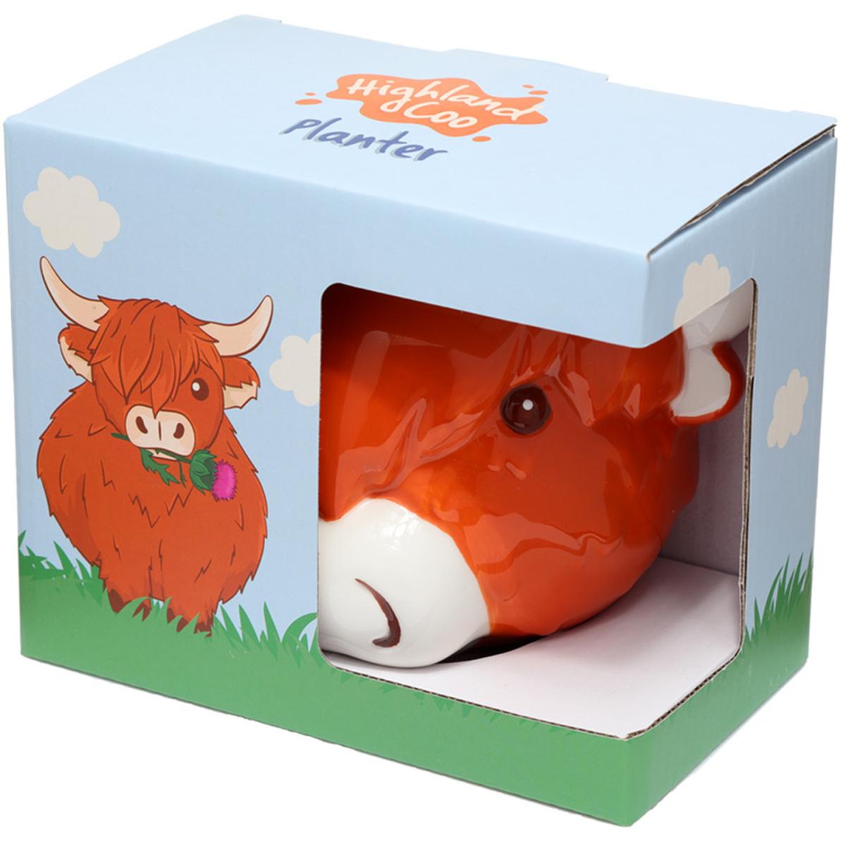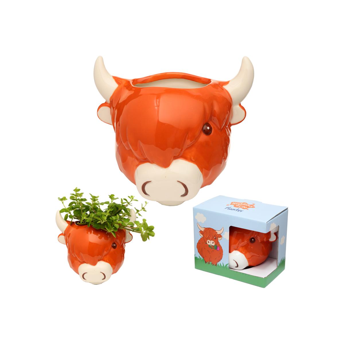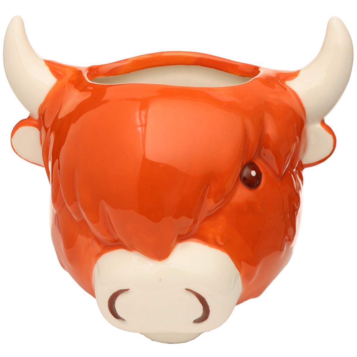 Ceramic Indoor Shaped Wall Planter Plant Pot - Highland Coo Cow - Brown