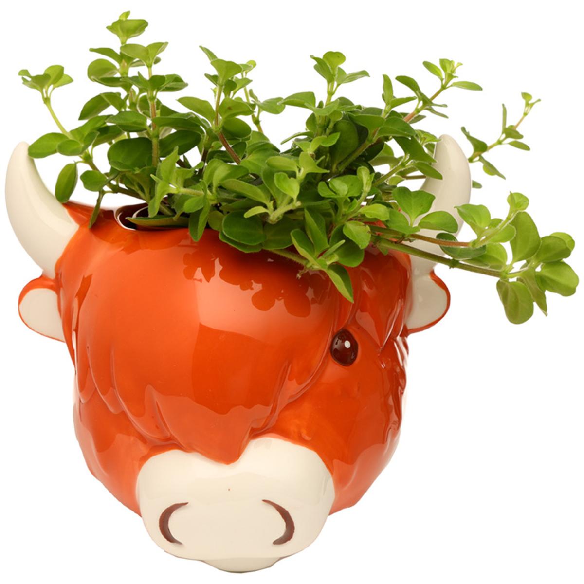 I love how the Highland Coo cow makes a fun yet functional statement piece. It's perfect for adding a touch of quirky charm to any space, especially in more casual or rustic interiors. This ceramic pot works well in living rooms, kitchens, or even outdoor patios where playful accents are welcome. For styling tips, consider placing it on open shelving with some trailing plants like String of Pearls or a small succulent inside, to emphasise its character without overpowering other decor. It’s equally effective as a standalone decorative object or as part of a collection of colourful or themed plant pots, giving your greenery a distinctive centrepiece.