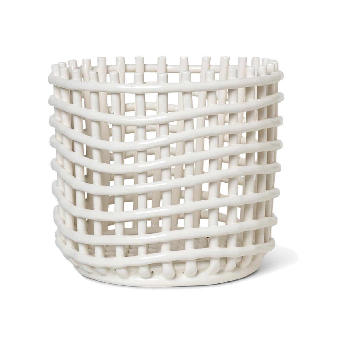 Ceramic Large Basket - / Ø 23.5 x H 21 cm - Hand-made by Ferm Living White