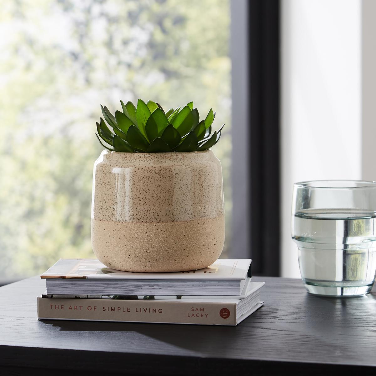 A house is not a home without adding a touch of greenery to it. So why not make your house a home with our succulent plants? The plant pot has been made from durable ceramic and has been designed with a matte and glossy finish. There's no need for any maintenance when it comes to looking after the succulent as it's artificial. Can you believe it?.