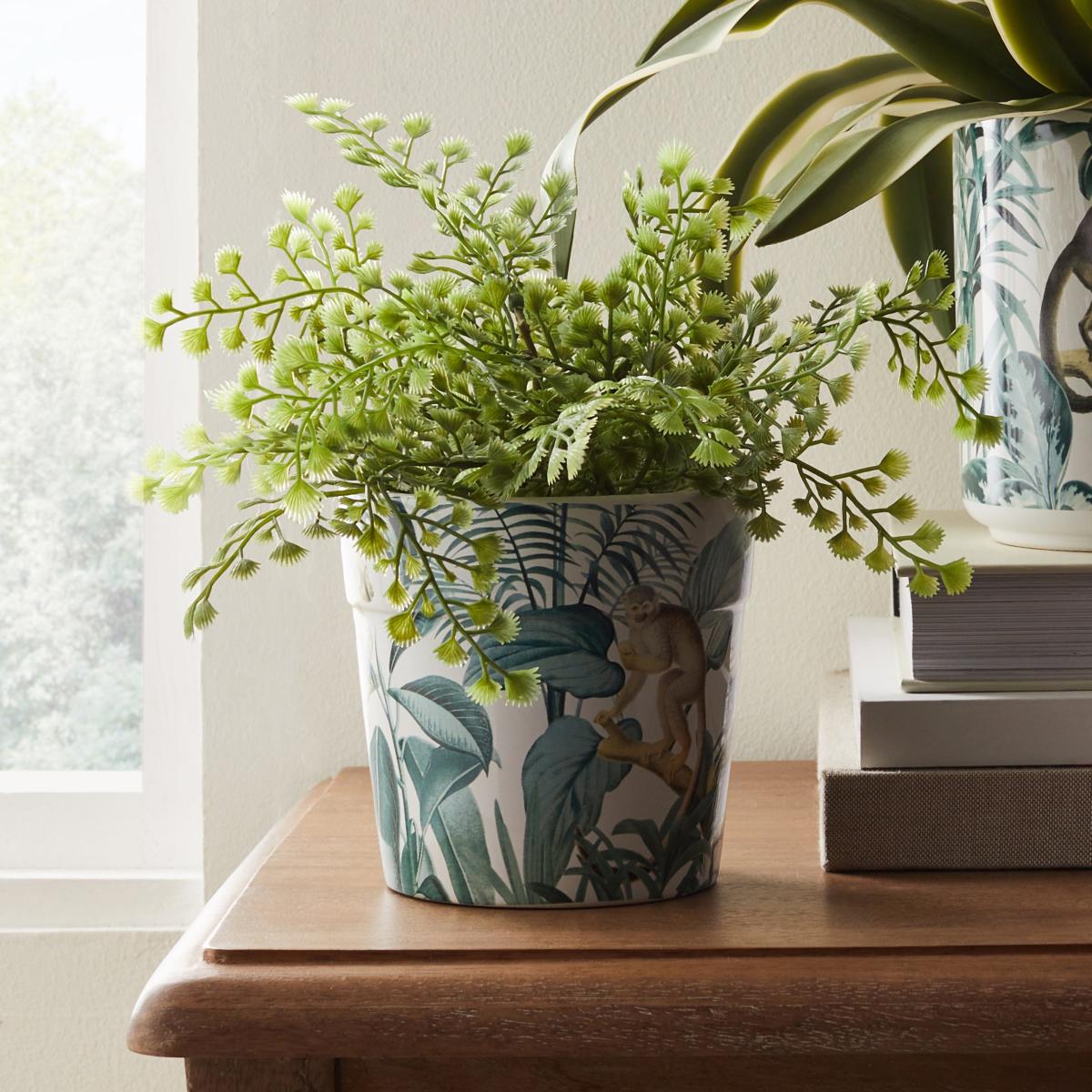 * Contemporary Design* Monkey pattern* Available in two sizes* Made from ceramic* Easy to wipe clean Add a fun element to your home with this beautiful Ceramic Monkey Plant Pot, perfect for placing small plants around your home or desk space. This contemporary plant pot is available in two sizes and easy to maintain.