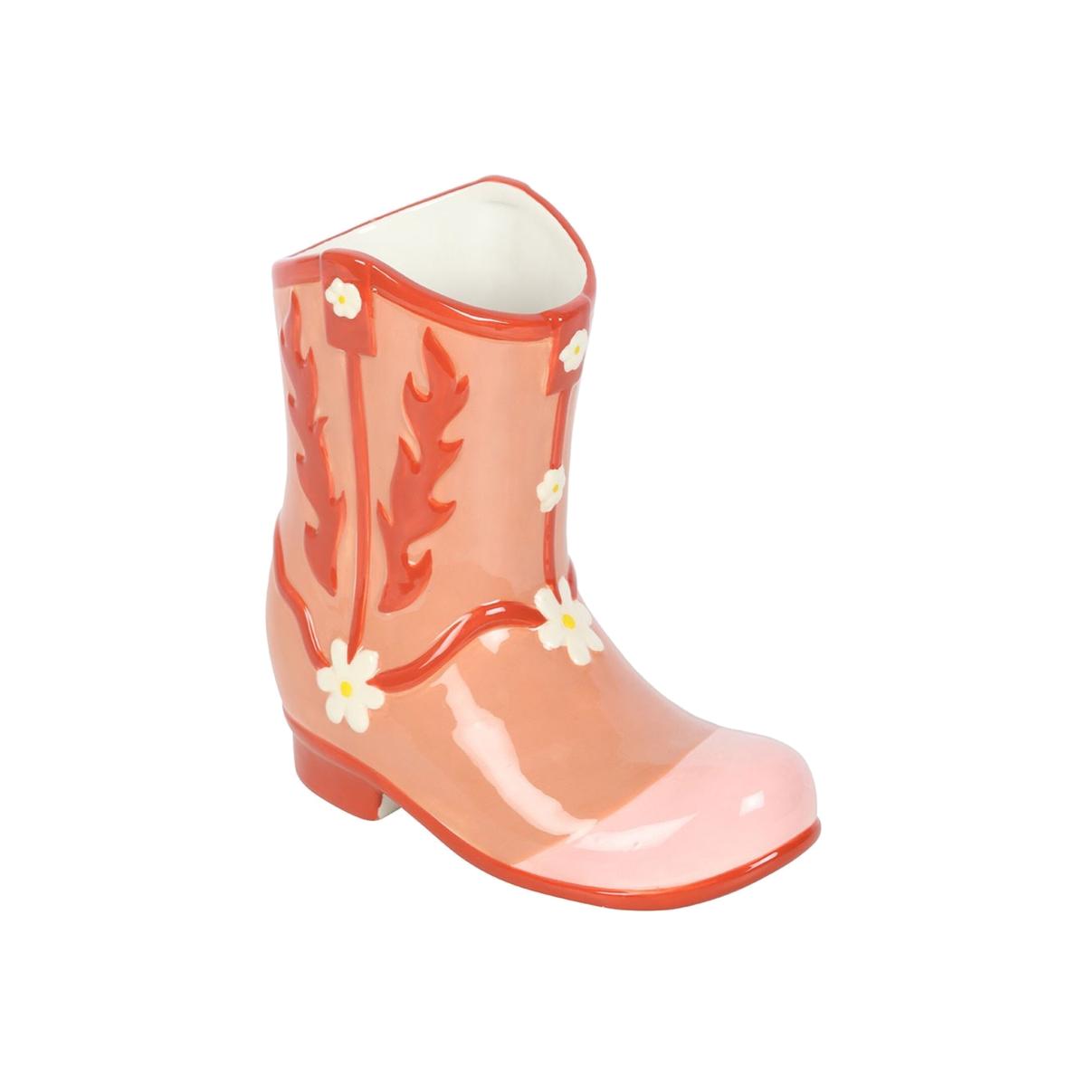 Ceramic Pink Cowboy Boot Flower Vase - Pink