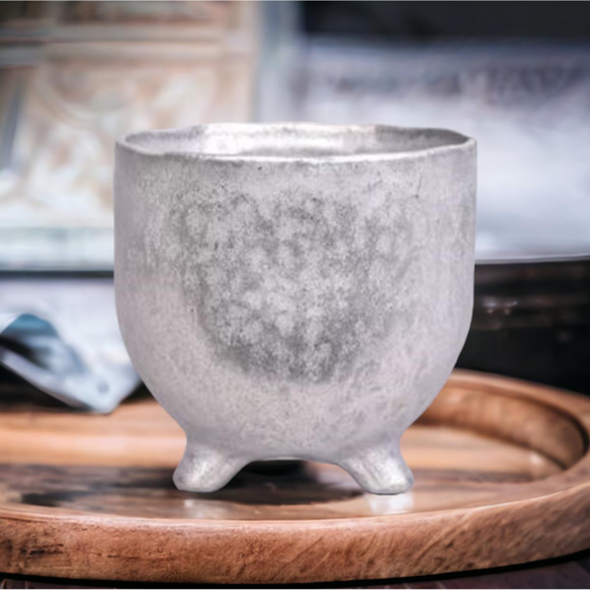 This silver plant pot has a rustic silver finish. The pot will compliment any home decor style. Perfect for small plants such as succulents. There are no drainage holes. External dimensions, height 11 cm x width 11 cm.