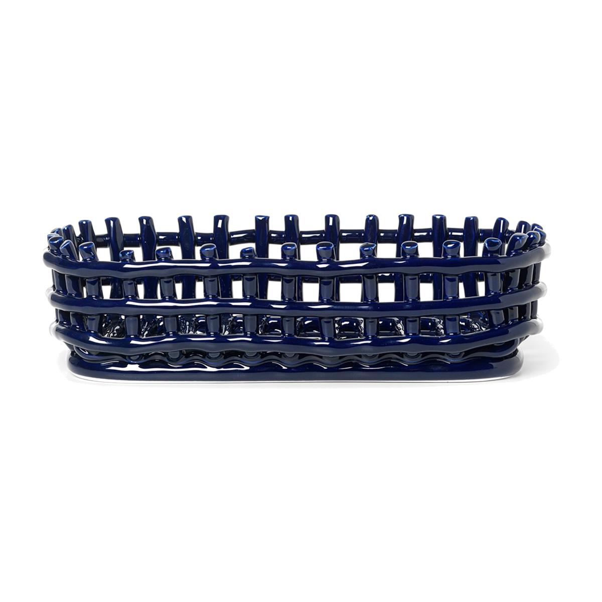 Ceramic plated basket oval 15x30 cm Blue