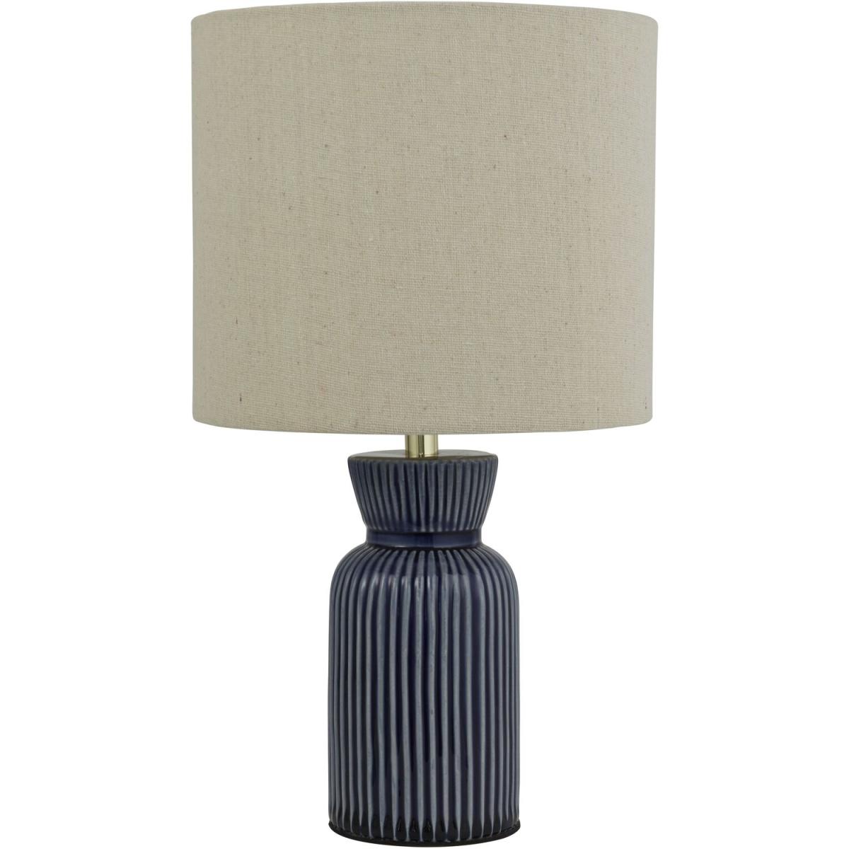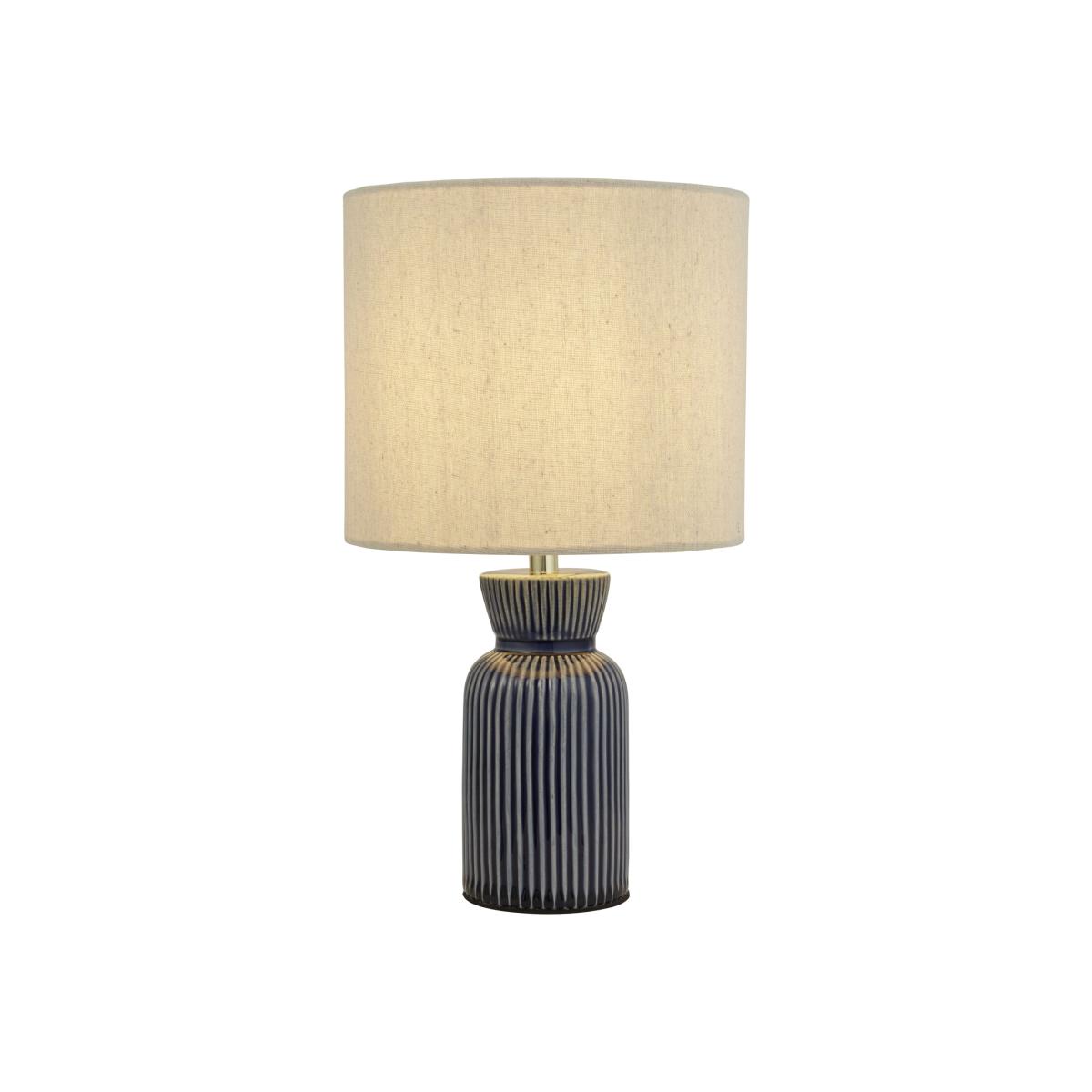 This blue and white table lamp is a simple way to add a splash of colour to any home. With a blue ceramic base and white fabric shade, the table lamp will instantly update any room.