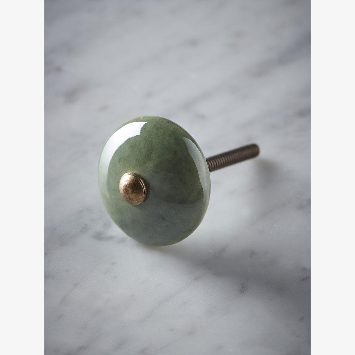 Add a subtle touch of colour to your home with this round knob. A cool blue with a green undertone complements the brass hardware, creating a sophisticated and detailed finish to your furniture.