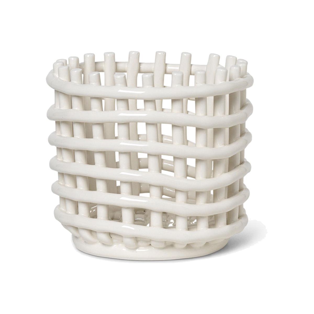 Ceramic Small Basket - / Ø 16 x H 14.5 cm - Hand-made by Ferm Living White