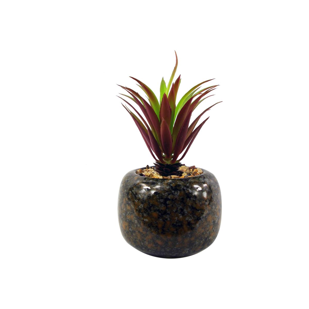Ceramic Spotted Planter with Artificial Red Dracaena Plant, comes fully potted in the small ceramic planter shown. This is a pretty spotted design which looks fantastic on a desk. Decorative stones are fully fixed and won't come loose. Ready to display. Available with a choice of plants.