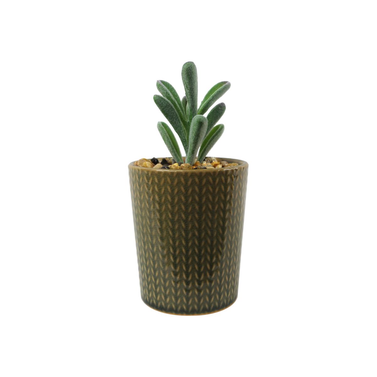 Ceramic Stone Stripe Planter with Artificial Succulent Plant. Plant comes fully potted in the small ceramic planter shown. This is an embossed stripe design which looks fantastic on a desk or in a window. Decorative stones are fully fixed and won't come loose. Ready to display. Available with a choice of plants.