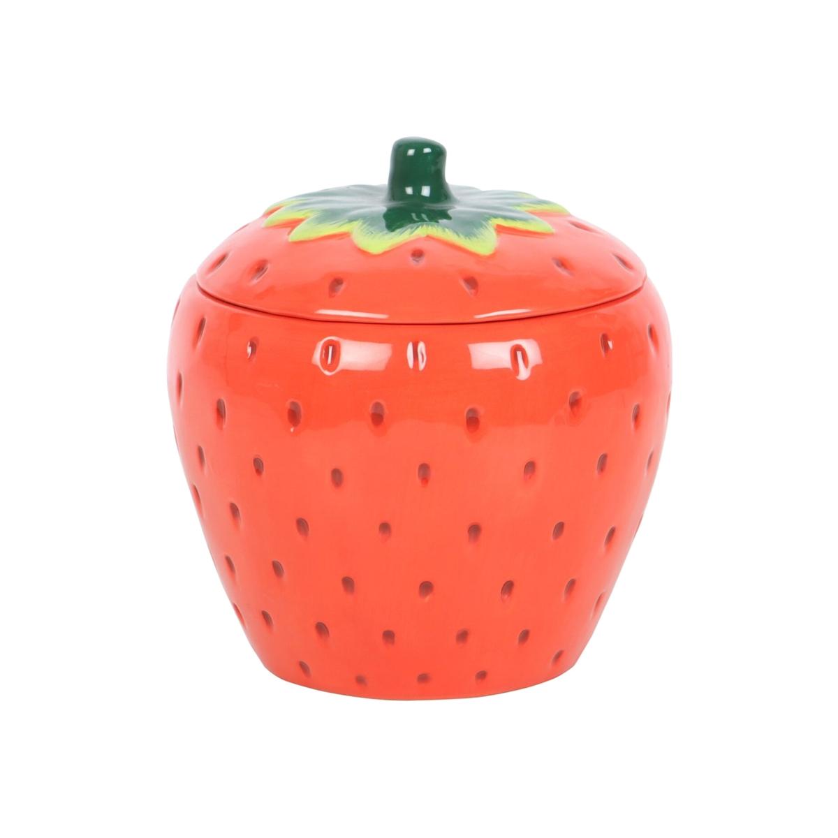 This bright red strawberry-themed, novelty oil burner with lid, makes for a fun and vibrant addition to any space and is perfect for infusing with favourite scents. Its playful design adds a touch of whimsy to home decor, making it both functional and decorative. Always remove the lid whilst in use. Recommended for use with fragrance oil diluted with water.