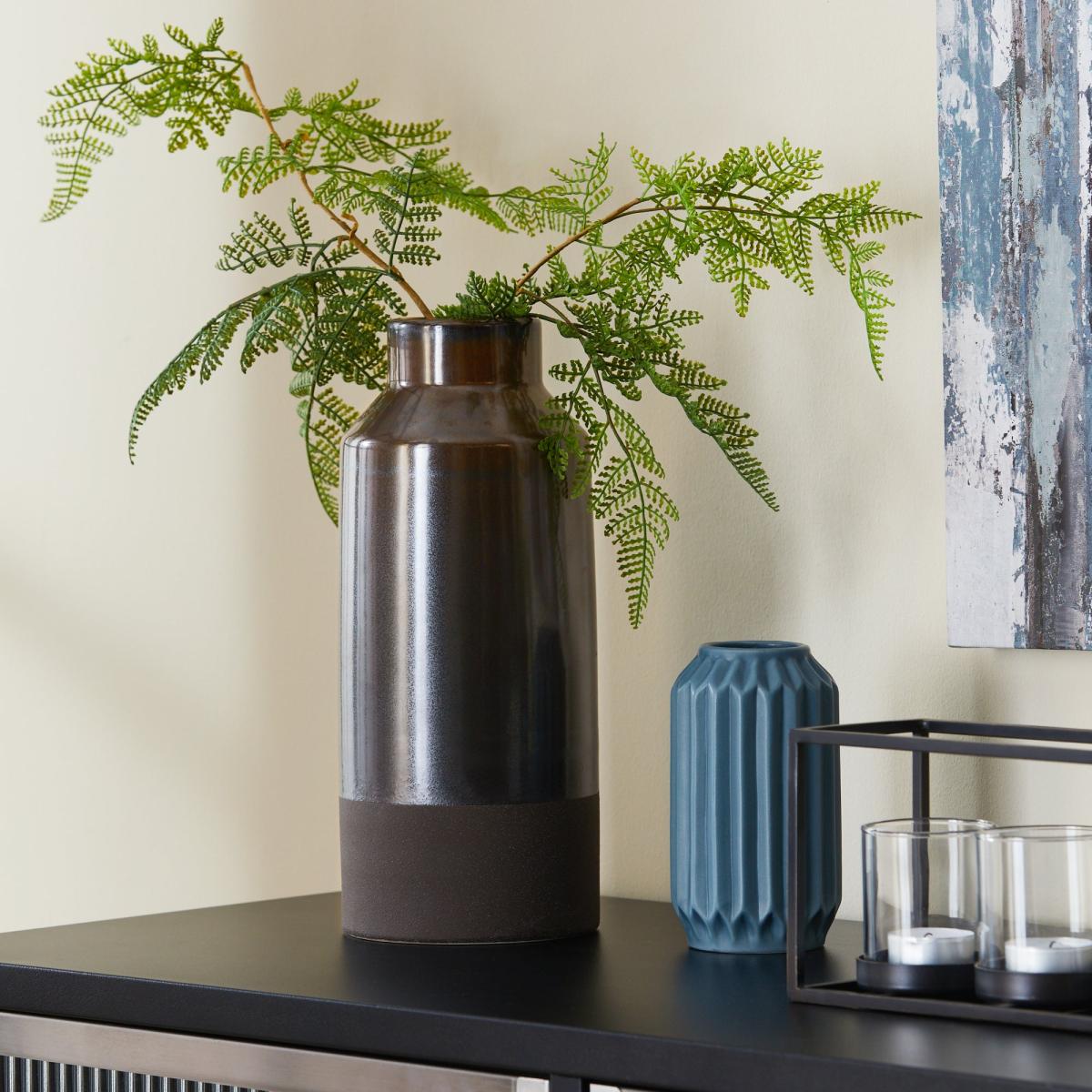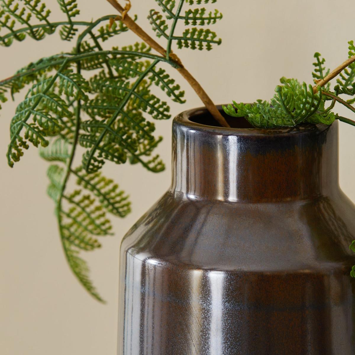 I really like this black vase - it’s versatile enough to work in a variety of interior styles, from modern minimalism to more eclectic spaces. Its sleek, understated design and matte finish make it a great statement piece on its own or as part of a curated display. I’d suggest using it with dried flowers or natural stems for a contemporary look, or even as a solo decorative object to add depth and texture to a shelf or sideboard. To maximise its impact, place it against a light-coloured background or near contrasting objects for visual interest. Its modest size makes it perfect for filling smaller spaces or creating a subtle focal point.
