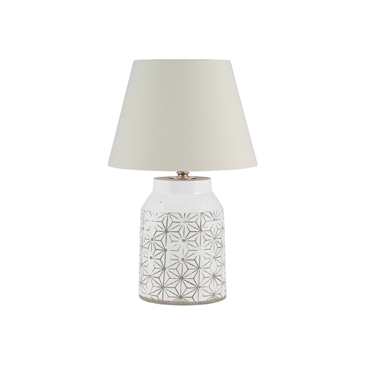 Ceramic White Star Table Lamp The Ceramic Star Table Lamp adds a fresh look to your space with its cream finish, and features a faded geometric star pattern for a contemporary feel. The Ceramic White Star Table Lamp would look perfect atop a bedside table Ceramic White Star Table Lamp | Barker & Stonehouse