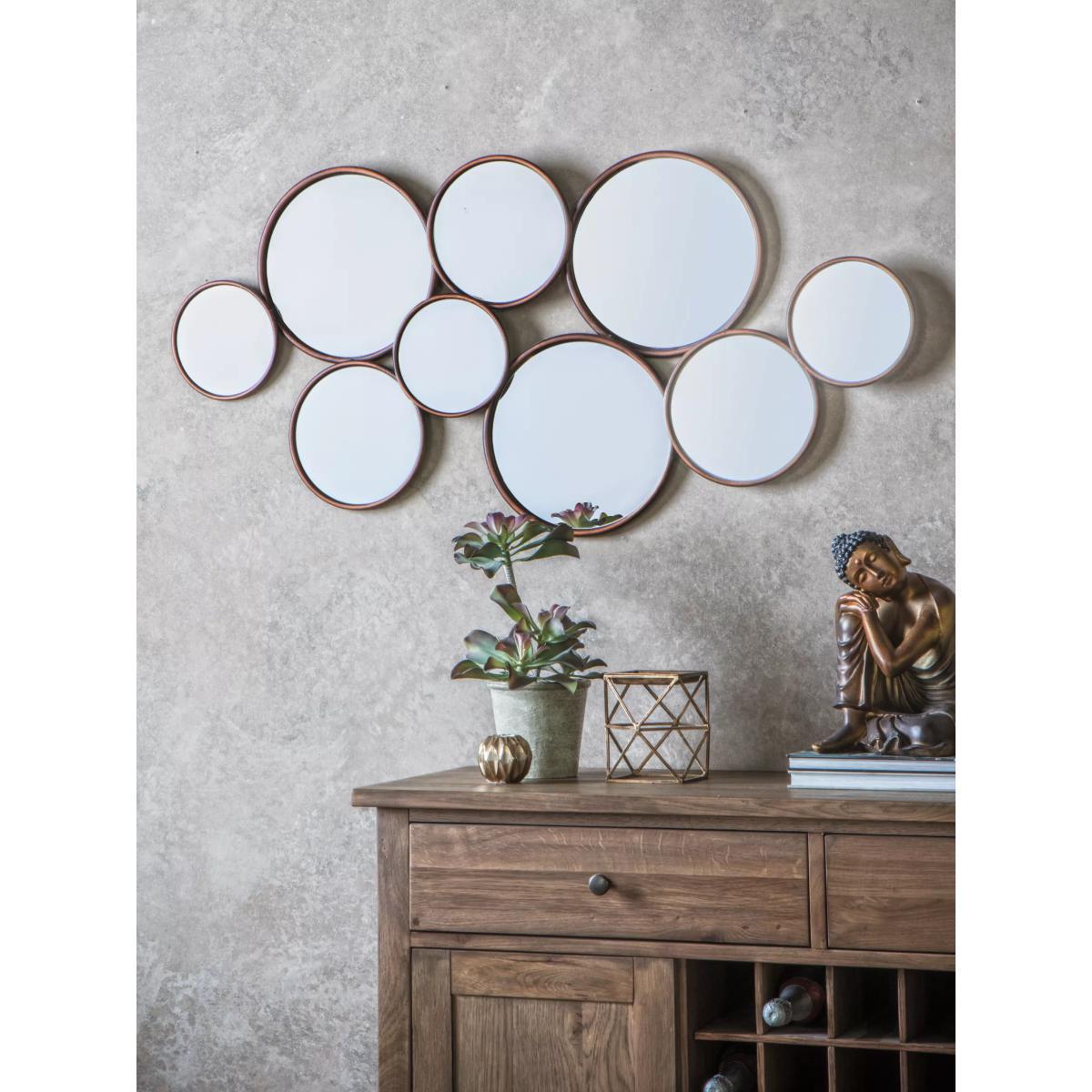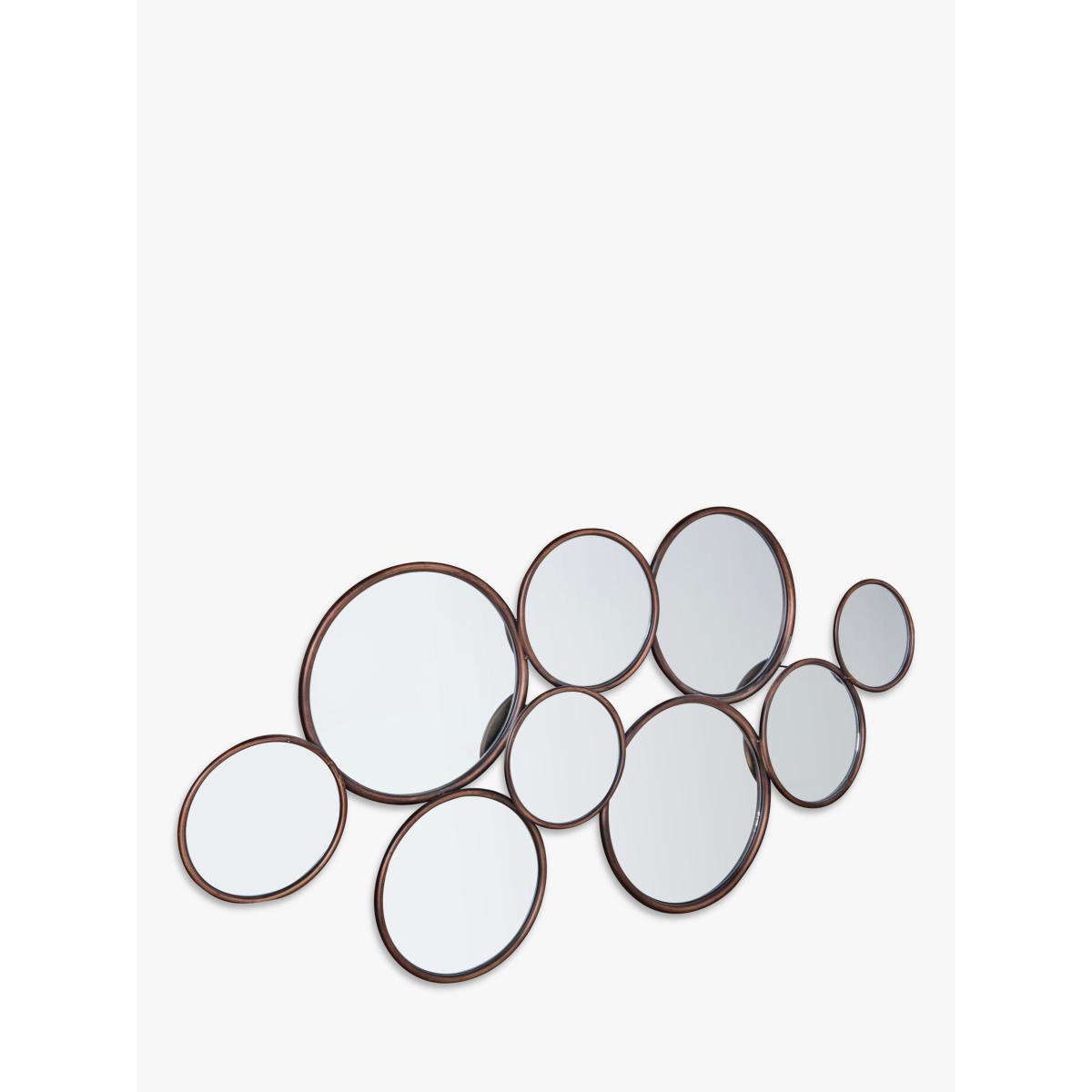 A statement piece for a wall, this mirror is formed of interconnected metal circles with an on-trend copper finish. The Cerchio mirror, taking its name from the Italian for 'circle', suits any room or hallway and is ready to wall mount by the keyhole fittings on the back.