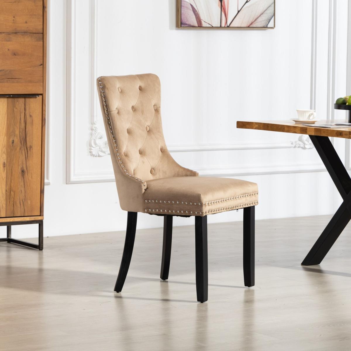 Ceres Velvet Fabric Dining Chairs - Set of 2 - Brown
