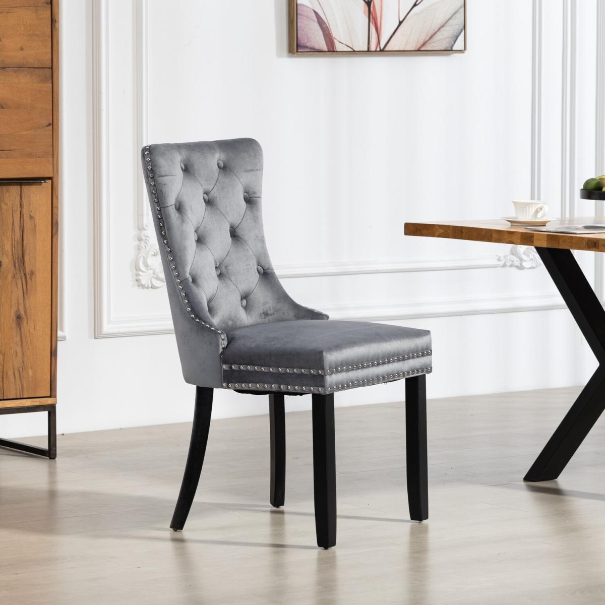 Ceres Velvet Fabric Dining Chairs - Set of 2 - Grey