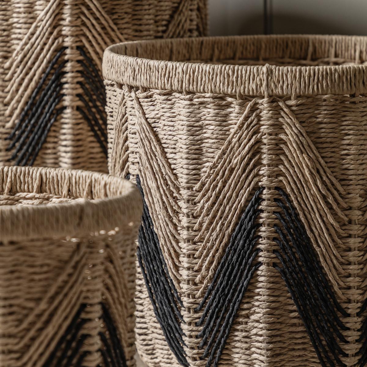 These baskets are a versatile addition for a wide range of interiors, from coastal to contemporary styles. I love the natural fibre texture, which adds warmth and a tactile element, while the black detail on the set provides a subtle contrast that can tie in well with darker accents or fixtures. They work especially well for styling open shelving, storage in living rooms, or even in bathrooms for organising smaller items. Practical tips include using the larger one for blankets or magazines, the medium for toys or linens, and the smaller for accessories or keys - the set offers a cohesive look that’s both functional and stylish. Their neutral tones also mean they won’t clash with existing decor, making them an easy, clever upgrade.