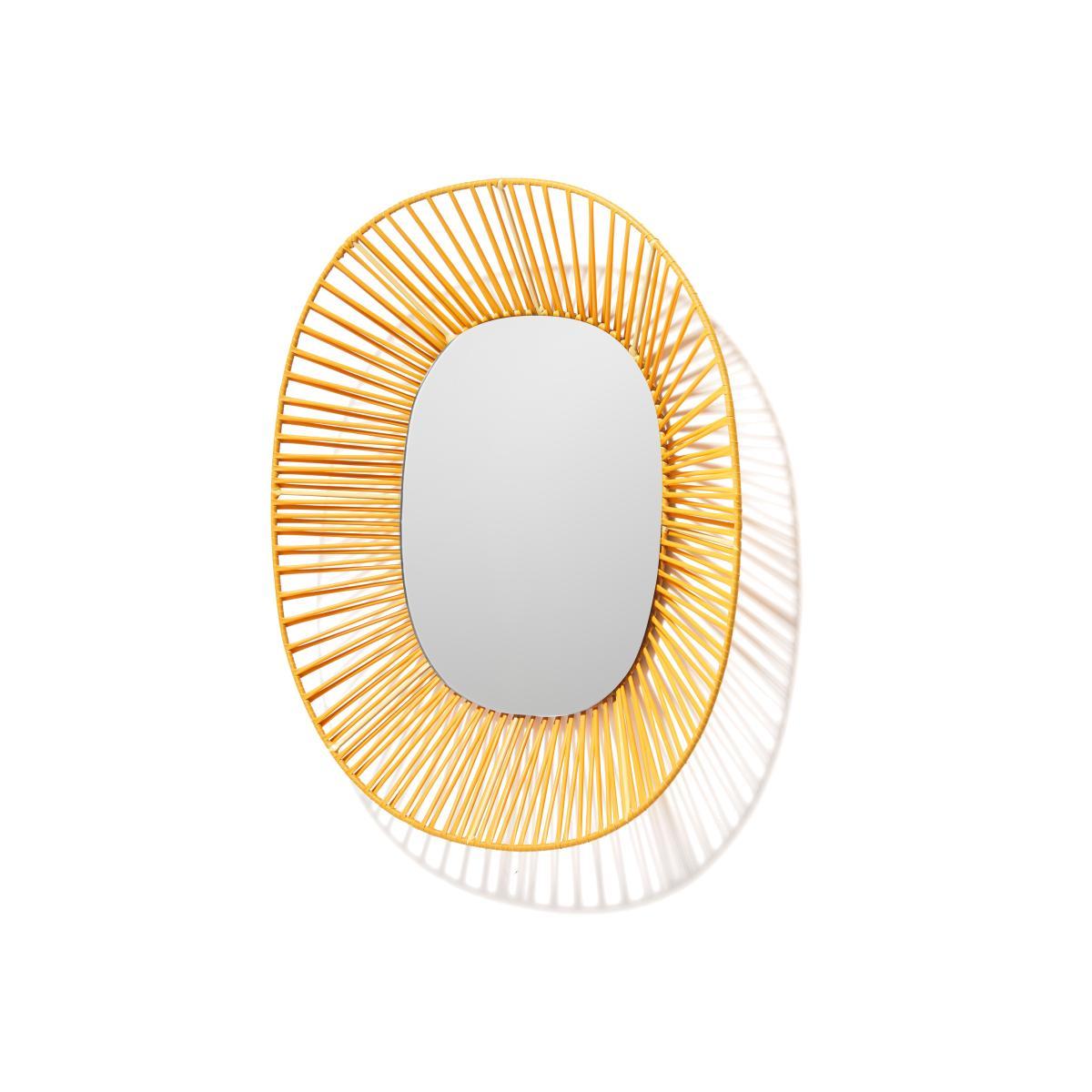 A multicultural, ethnic design, brought to life by flashy colours, contemporary and joyful. French designer Pauline Deltour has created a mirror inspired by the creative language of South America. The Cesta mirror stands out for its amazing convex frame made up of a multitude of recycled PVC threads, stretched over a thin steel frame. Hand-crafted in Bogota, Colombia, the Cesta mirror is the result of exceptional craftsmanship. You’ll love the graphic effect of this ethereal composition with its retro accents. Cesta dresses your wall space with elegance and becomes a true decorative element. The palette of bright colours is inspired by traditional Colombian houses, painted in flashy hues. Pauline Deltour explains: "My trip to Colombia was incredibly inspiring. In the south of the country, we saw dozens of houses painted blue, green, pink, red and other bright colours. This inspired me to use bright colours and mix them. I was also inspired by David Hockney's paintings; looking at them gives me fresh, joyful inspiration. " The Cesta mirror carries the magical DNA of Colombia: it’s both exuberant, rich in humanity, modern and full of vitality. A treat for the eyes and an invitation to travel. The Cesta mirror was born as a result of designer Pauline Deltour's trip to Colombia. Concerned with bringing originality and authenticity to her creations, she met local craftspeople who have managed to preserve and pass on real expertise and traditional production methods over the centuries. Pauline Deltour visited the region of Nariño and the city of Bogotá. There, she met many artisans who have settled in the heart of the cities in the last twenty years, having left the countryside to flee war and violence. In order to support their families, they keep local knowledge alive and preserve techniques that would otherwise have been forgotten.