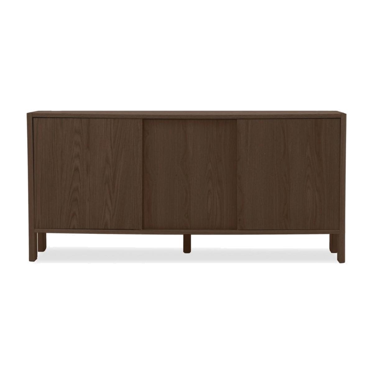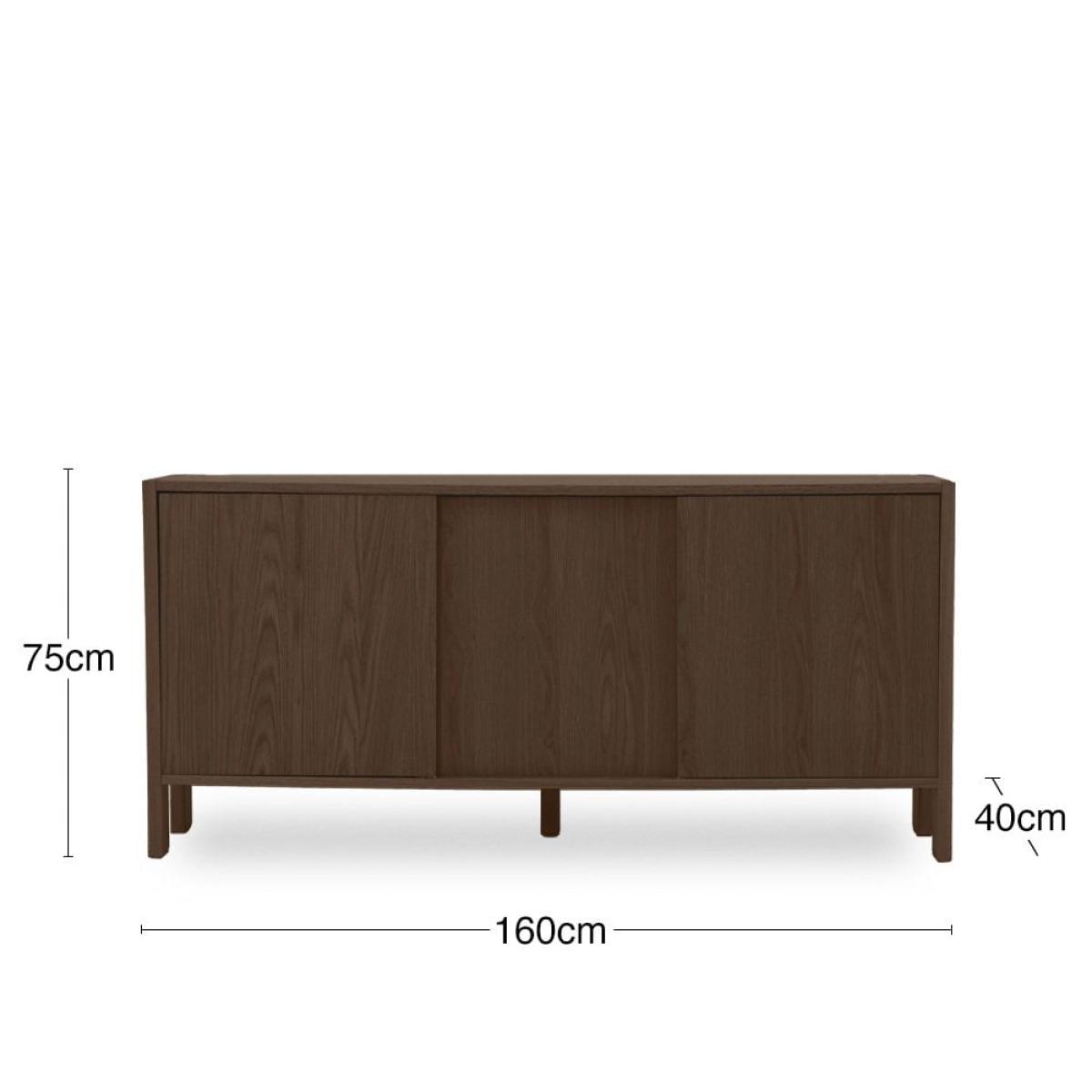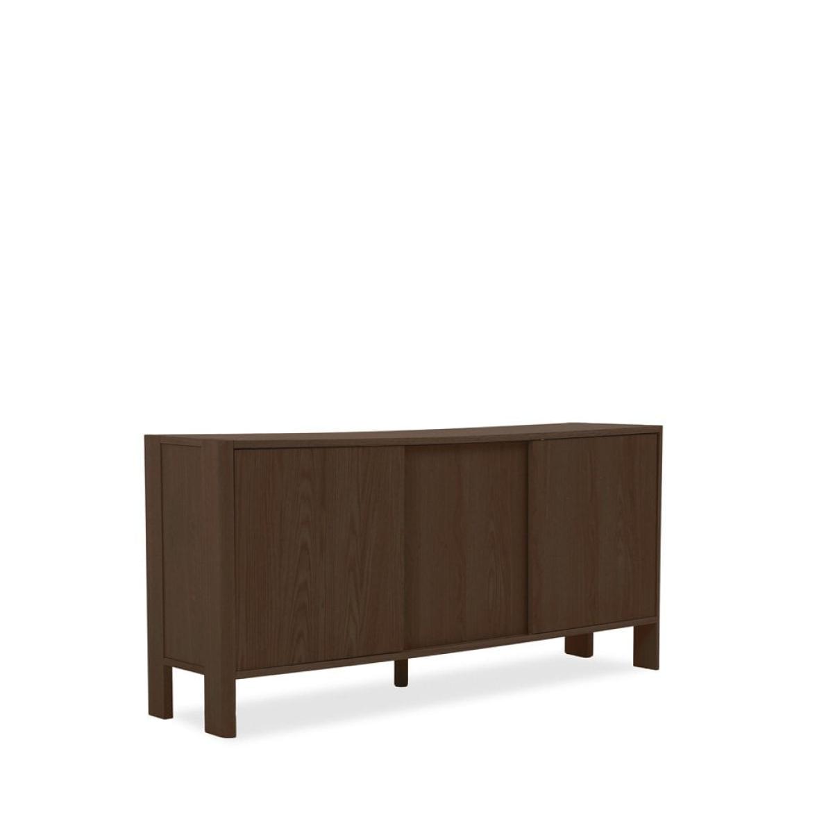 The minimalist design of the Ceva Wooden Sideboard is both stylish and practical. Made from solid wood and oak veneer in a smoked walnut finish, the doors slide across to reveal a roomy storage solution with adjustable shelves for dining rooms, living spaces, and spacious hallways. This 3 Door Sideboard is versatile with the ability to slot perfectly into nearly any existing home decor style.