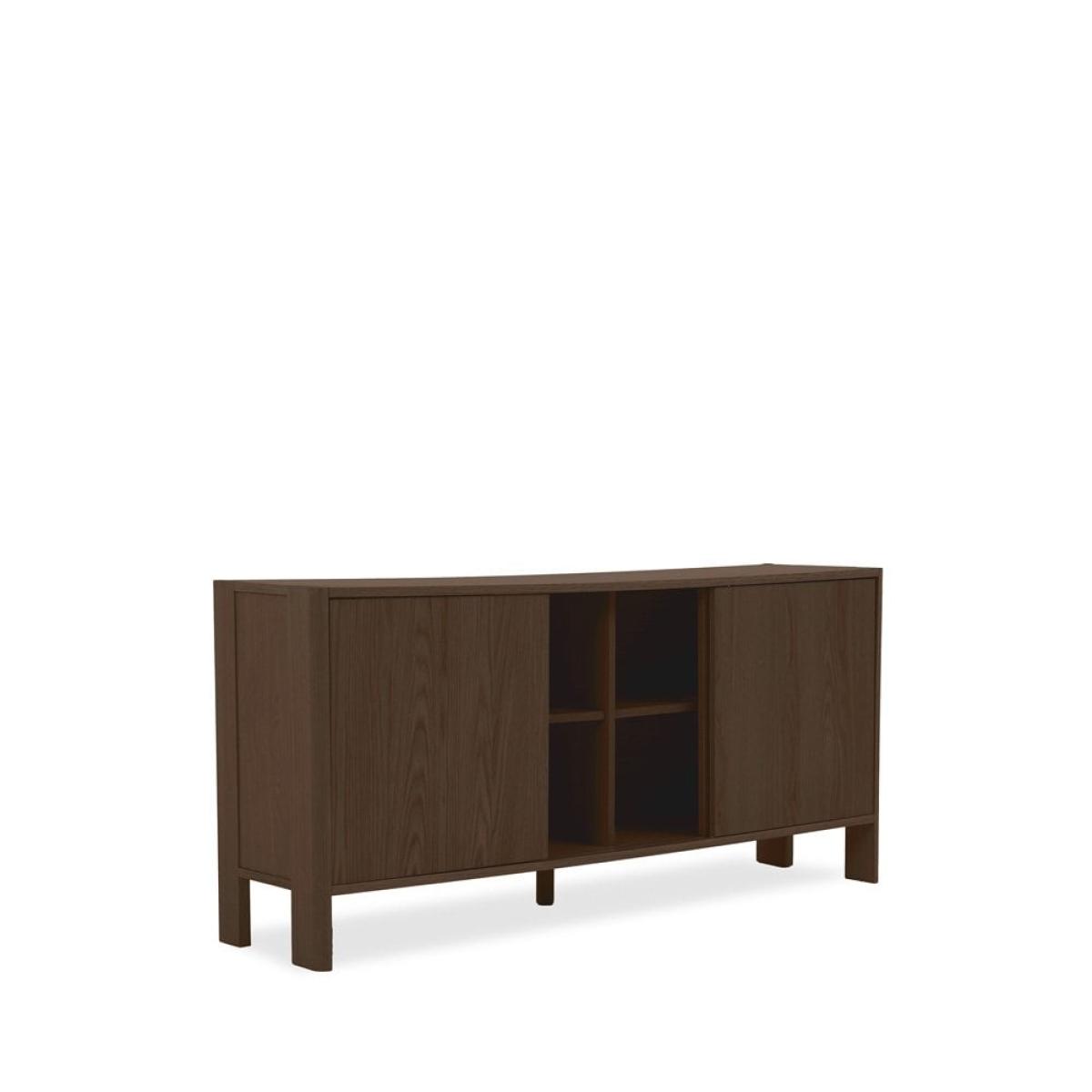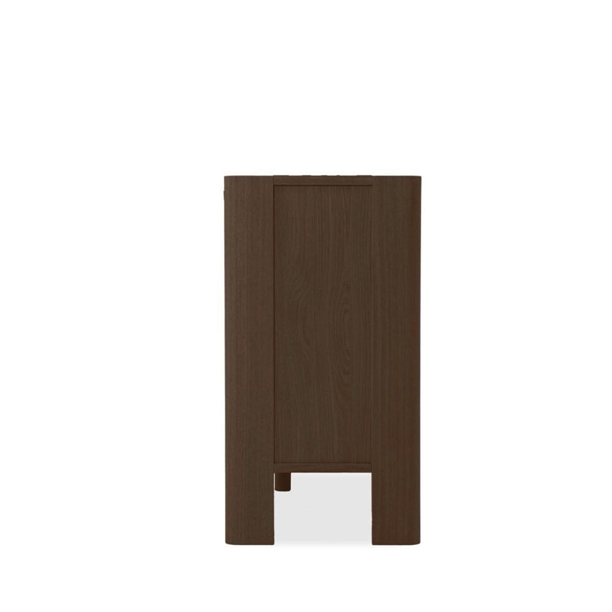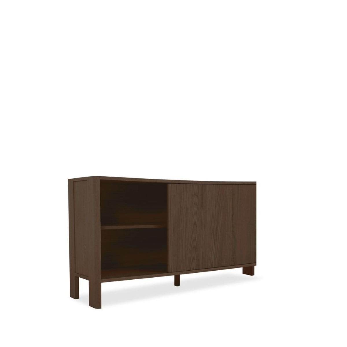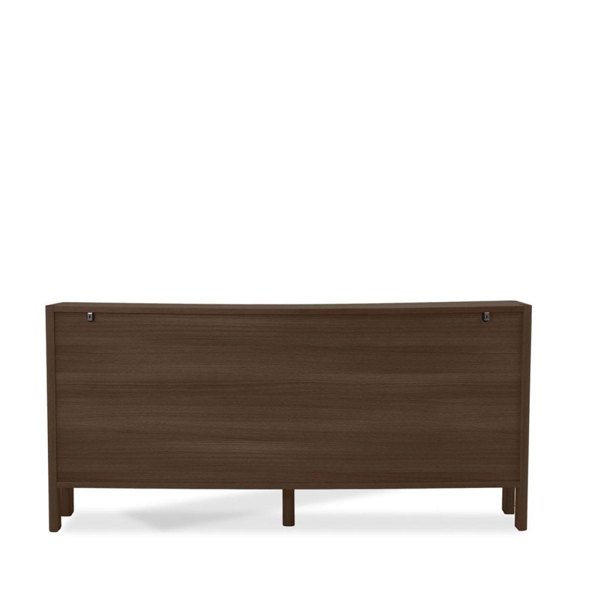 I’m a big fan of this smoked walnut sideboard for its clean lines and warm wood tone, which sit comfortably in Scandi-inspired, mid-century or contemporary schemes. The slender legs give it a light footprint, while three doors hide everyday clutter or dining essentials. Styling tip: keep the top simple - perhaps a low planter, a stack of books and a sculptural lamp to balance height. Inside, use uniform baskets or trays to corral items and make access easier. It works just as well as a hallway console or media unit, and the deep wood grain adds a subtle richness without overwhelming the room.