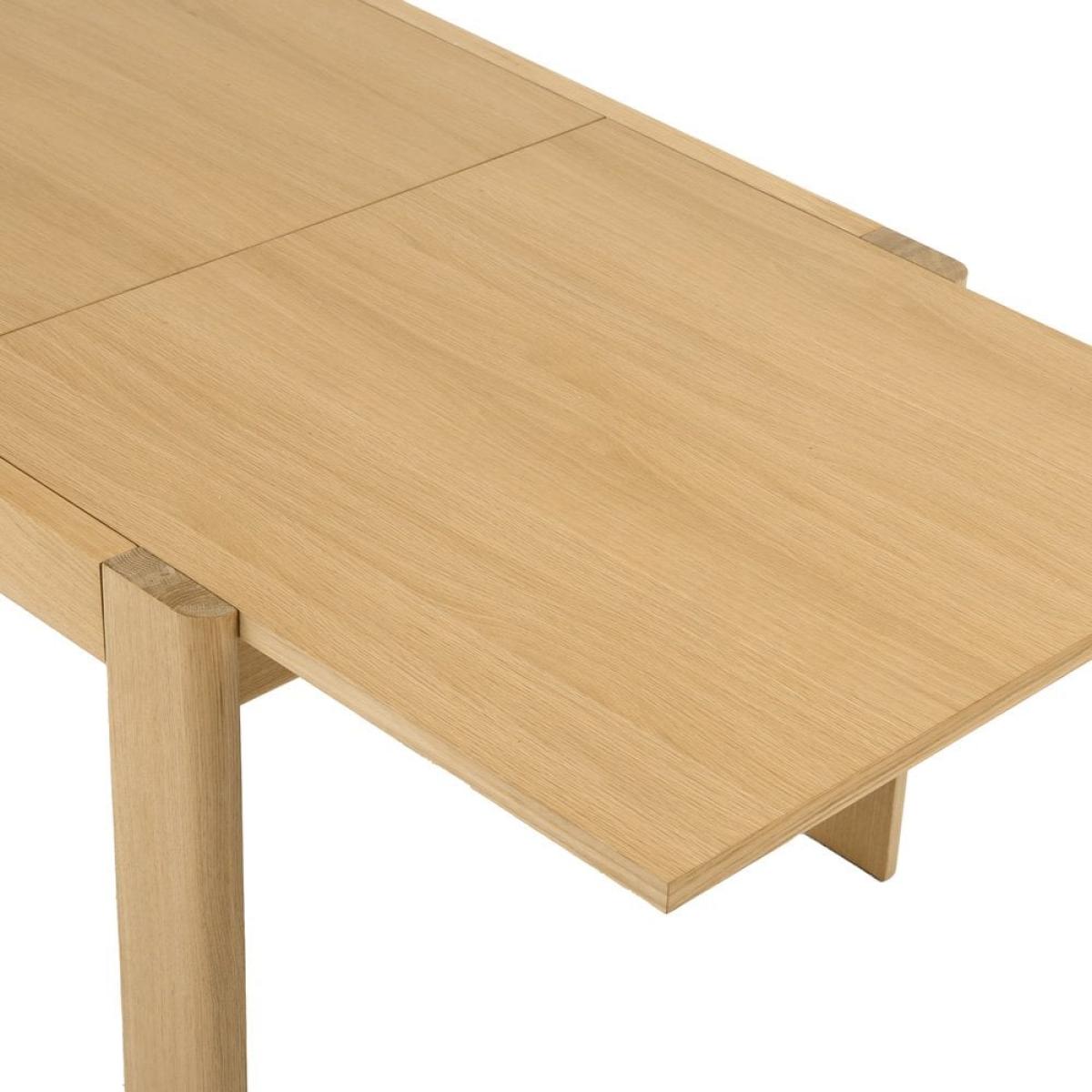 The minimalist design of the Ceva Extending Dining Table is both stylish and practical. With block pillar legs and plenty of legroom, this extending dining table is made from solid wood and oak veneer in a natural wooden finish. The extendable function takes you from 6 to 10 seats effortlessly, with the extension leaves stored underneath the table for an easy clutter-free solution. With simple assembly too, it is perfect for everyday meals or entertaining.