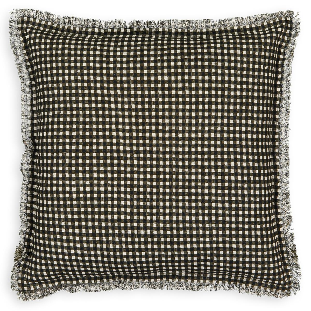 Cévennes Checked Fringed Linen Cotton Square Cushion Cover