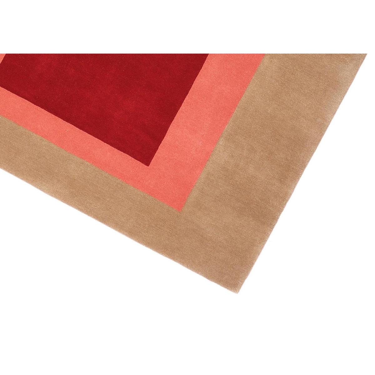 I love this rug because of its bold, geometric design inspired by Josef Albers’ work, which adds a contemporary and artful focal point to any space. Its neutral beige background with striking red squares makes it versatile enough for both modern and minimalist interiors, while also bringing a pop of colour to more subdued schemes. It works particularly well in living rooms or bedrooms that need a statement piece, and it’s large enough to anchor a seating area or define a space. For styling tips, consider pairing it with simple furniture in neutral tones to let the rug be the feature, or add layered textures with cushions and throws to soften the look. Since it’s a sizable piece, ensure it’s placed where people can appreciate its visual impact without overpowering the room.