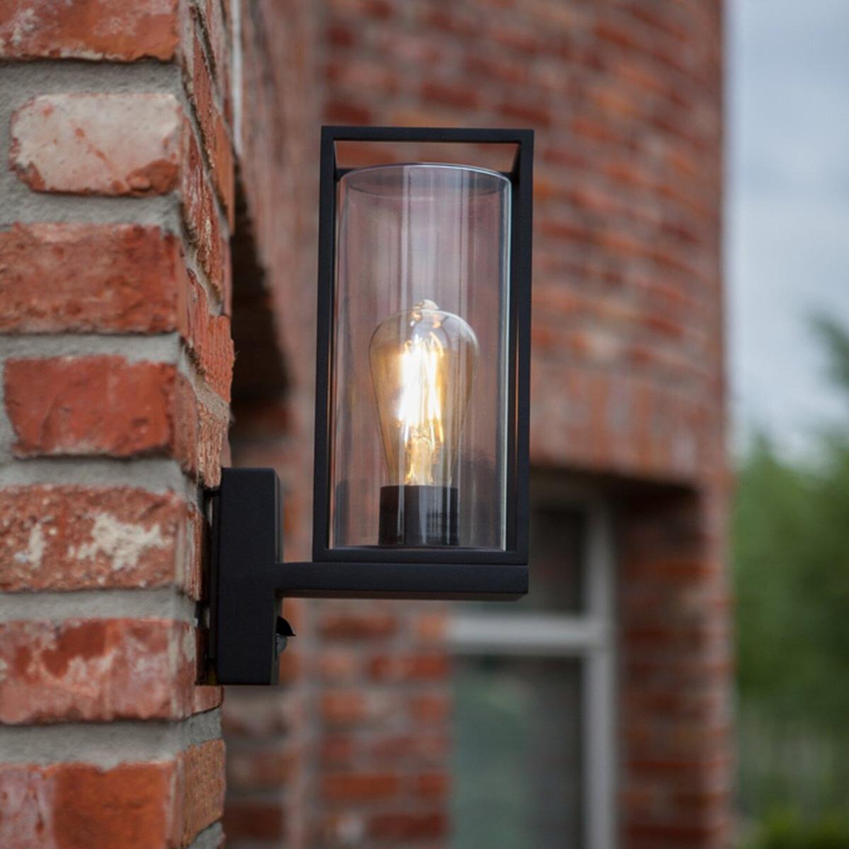 Wall lantern with clear glass and black finish. The elegant appearance of the lamp makes it ideal for modern outdoor spaces. You can install it with a decorative light bulb to give a more traditional look to a contemporary design. It has a PIR motion sensor. IP44 Rated for outdoor use, 220-240V mains power, ambient temperature -20 to +30, class 1. 1 x E27 bulb (not included), max 40. W.